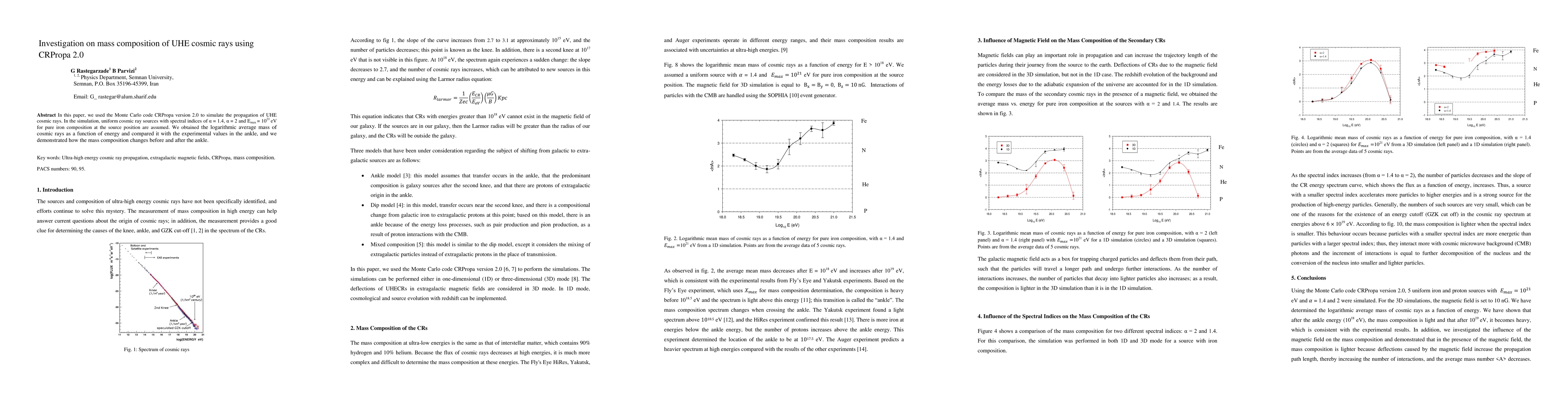 This paper uses CRPropa 2.0 to simulate UHE cosmic rays' propagation, finding the logarithmic average mass composition as a function of energy. The study compares these results with experimental data around the ankle, revealing changes in mass composition before and after this energy transition.