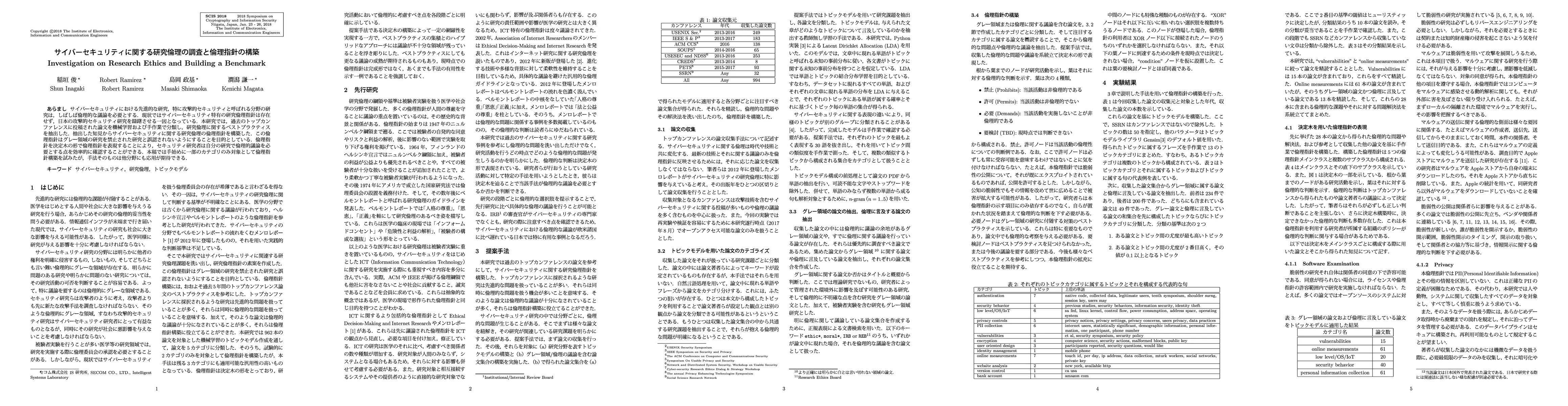 When dealing with leading edge cyber security research, especially when operating from the perspective of an attacker or a red team, it becomes necessary for one to at times consider how ethics comes into play. There are currently no cyber security-specific ethics standards, which in particular is one reason more adversarial cyber security research lags behind in Japan. In this research, using machine learning and manual methods we extracted best practices for research ethics from past top conference papers. Using this knowledge we constructed an ethics knowledge base for cyber security research. Such a knowledge base can be used to properly distinguish grey-area research so that it is not wrongly forbidden. Using a decision tree-style user interface that we created for our knowledge base, researchers may be able to efficiently identify which aspects of their research require ethical consideration. In this work, as a preliminary step we focused on only a portion of the areas of research covered by cyber security conferences, but our results are applicable to any area of research.