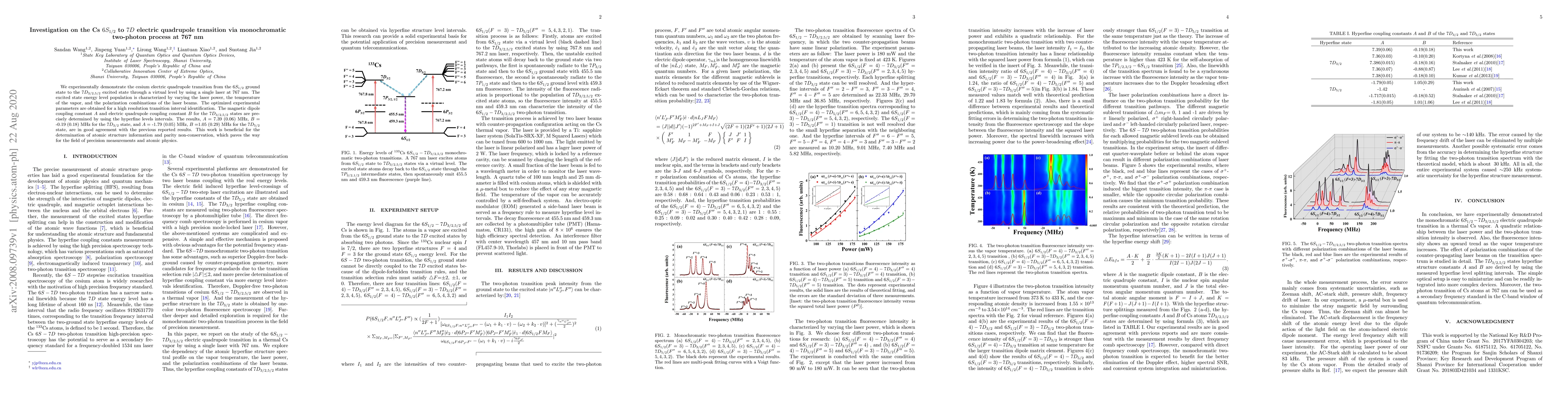 This research demonstrates the cesium electric quadrupole transition from 6S1/2 to 7D3/2,5/2 states using a single laser at 767 nm. Precise magnetic dipole and electric quadrupole coupling constants were determined, agreeing with previous results, contributing to atomic structure information and precision measurements in atomic physics.