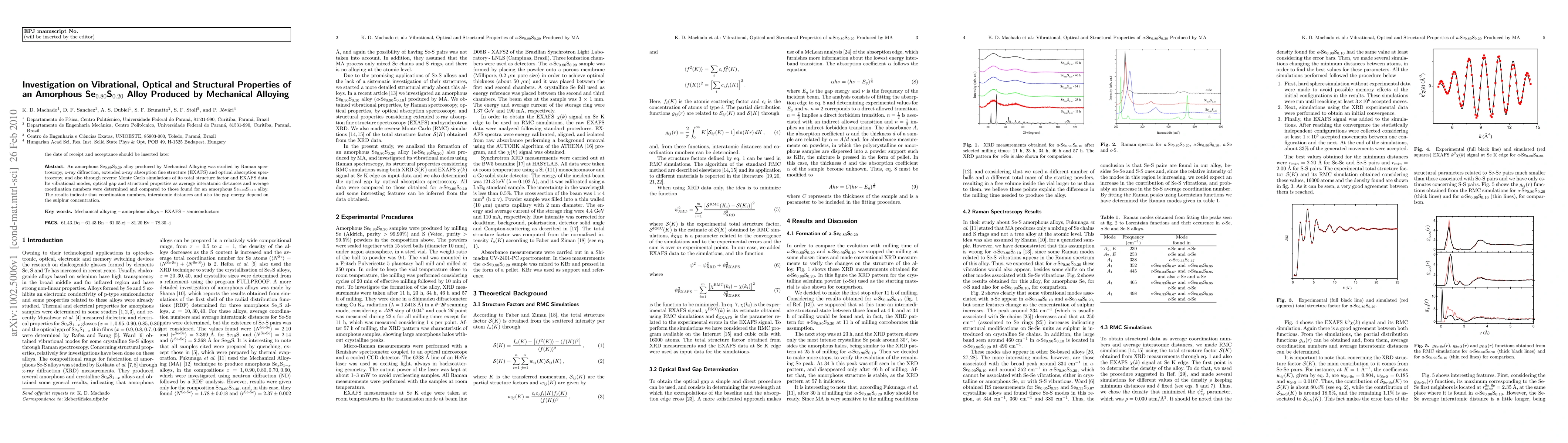 This study investigates the vibrational, optical, and structural properties of an amorphous Se$_{0.80}$S$_{0.20}$ alloy made via Mechanical Alloying, using Raman spectroscopy, X-ray diffraction, EXAFS, and optical absorption spectroscopy. Findings show that the alloy's coordination numbers, interatomic distances, and optical gap are influenced by sulphur concentration.