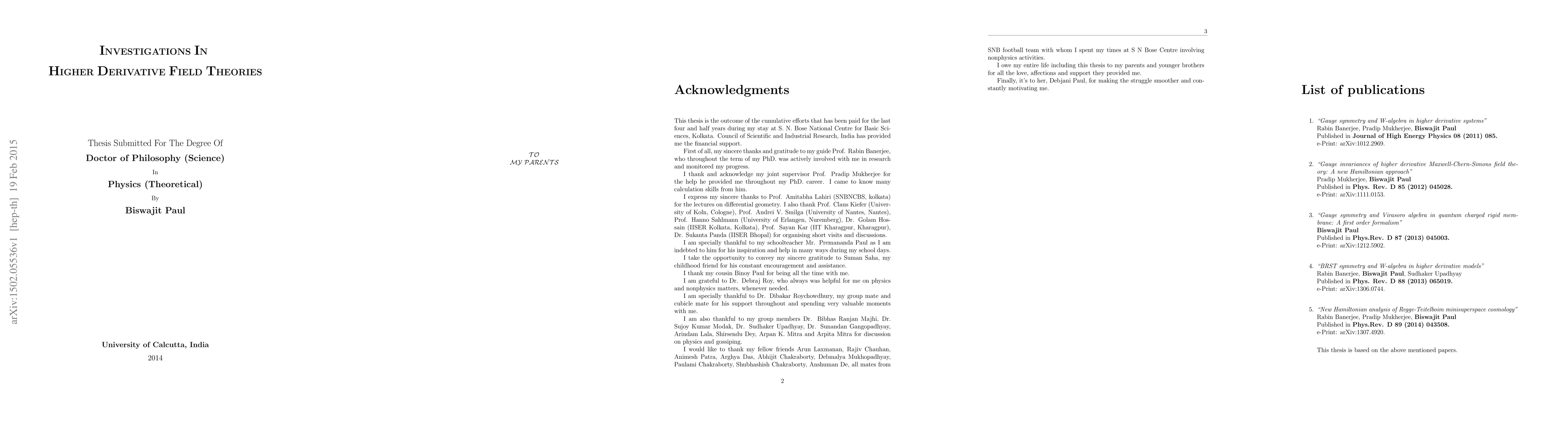 This research paper investigates higher derivative field theories using a systematic algorithm to identify gauge symmetries, demonstrating connections between these symmetries and $W_3$-algebras in various models from physics.