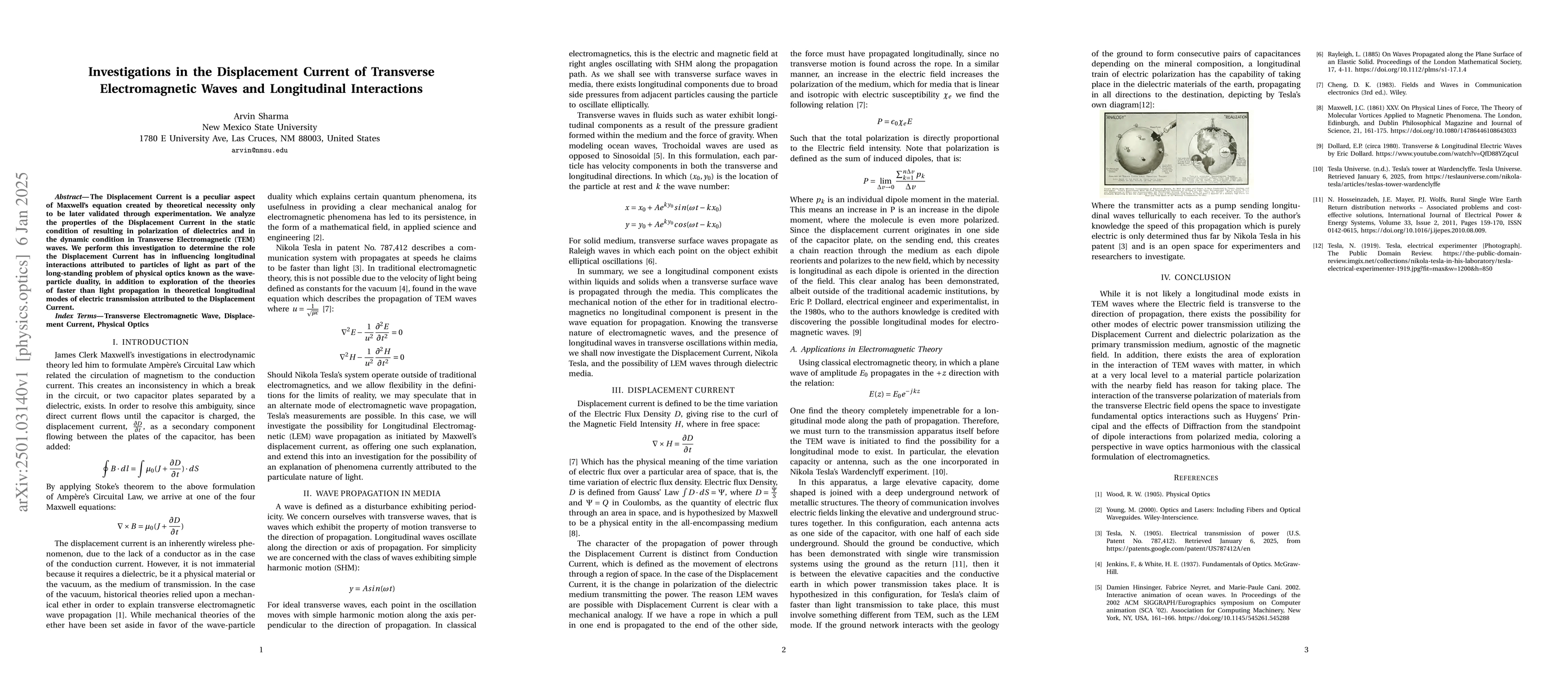 This paper investigates the Displacement Current in both static and dynamic conditions, focusing on its role in polarizing dielectrics and influencing longitudinal interactions in Transverse Electromagnetic waves, as well as exploring its implications for faster-than-light propagation theories in particle-light duality.