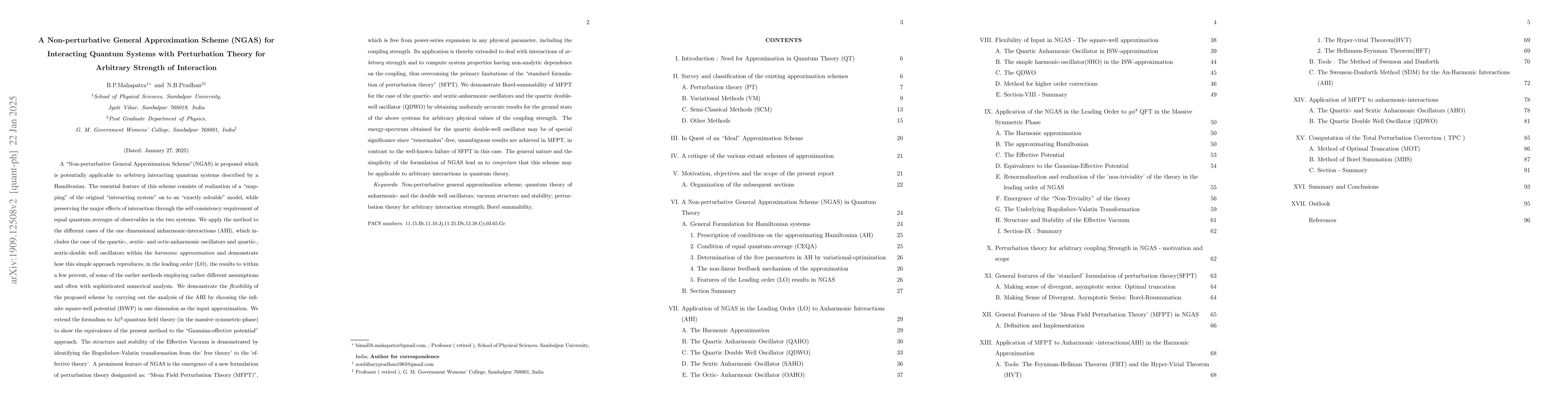 A novel general approximation scheme (NGAS) is proposed, which is potentially applicable for arbitrary strength of interaction in quantum theory. The scheme utilizes an input Hamiltonian, which is exactly solvable. The effects of interaction are incorporated into the input Hamiltonian through a non-linear feedback mechanism by self-consistency requirements. The method is nonperturbative, yet improvable in a new formulation of perturbation theory, designated as: mean field perturbation theory (MFPT). We apply the scheme to anharmonic interactions in one dimension and obtain uniformly accurate results by Borel summation, for the quartic-, sextic-, octic-anharmonic oscillators and to the quartic double-well oscillator (QDWO) for arbitrary strength of coupling. The results for the QDWO may be contrasted with those from the standard formulation of perturbation theory , where Borel-summation fails even for small values of the coupling strength.