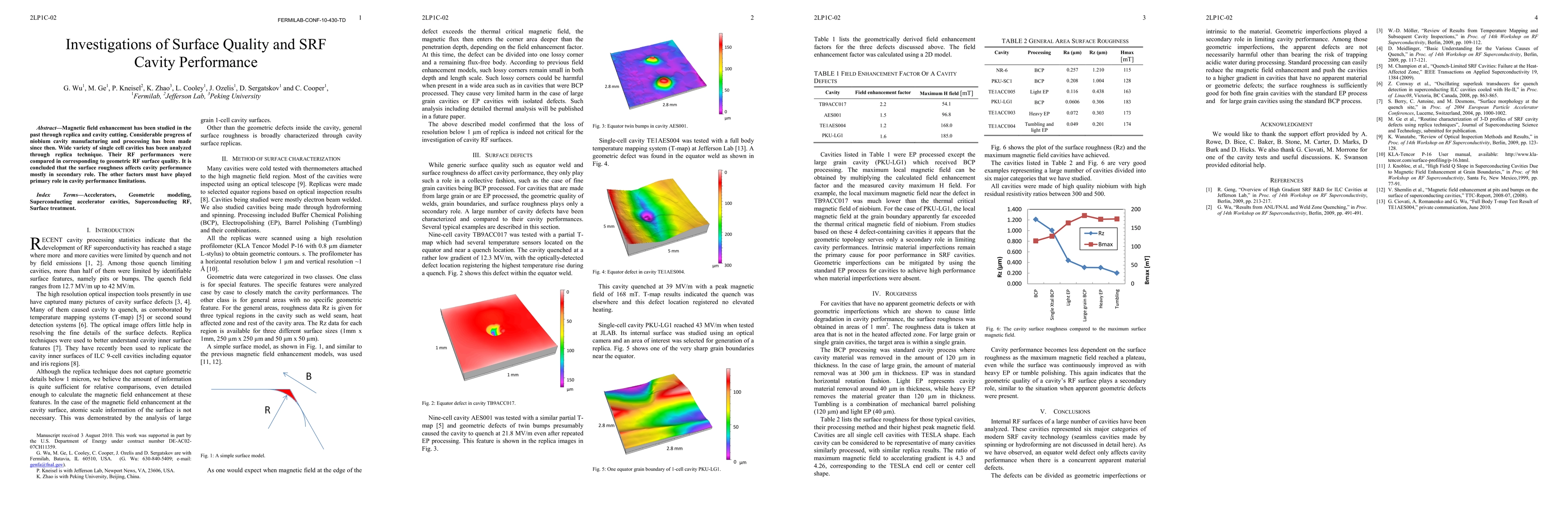 Magnetic field enhancement has been studied in the past through replica and cavity cutting. Considerable progress of niobium cavity manufacturing and processing has been made since then. Wide variety of single cell cavities has been analyzed through replica technique. Their RF performances were compared in corresponding to geometric RF surface quality. It is concluded that the surface roughness affects cavity performance mostly in secondary role. The other factors must have played primary role in cavity performance limitations.