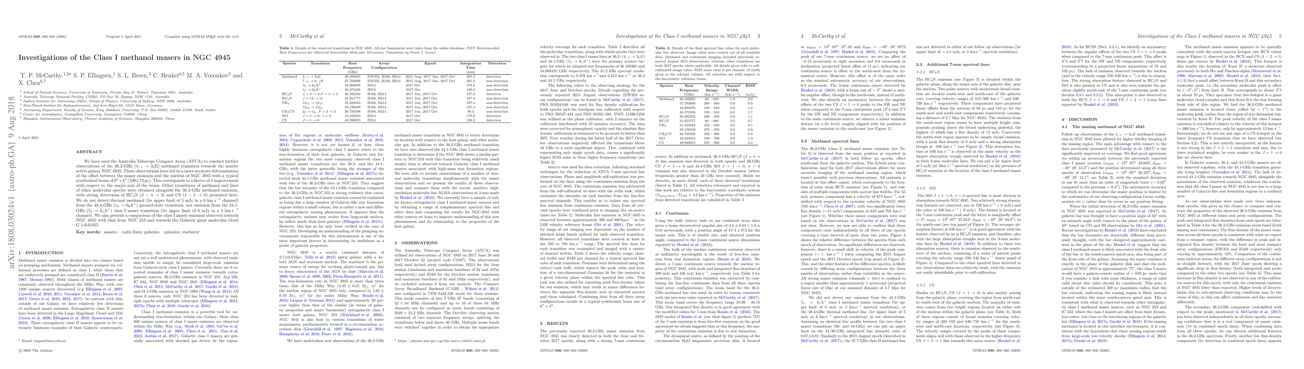 This study uses ATCA to observe methanol masers in NGC 4945, achieving a significant improvement in the determination of the maser offset from the galaxy's nucleus. No thermal methanol or certain class I maser transitions were detected, and comparisons with other sources were made.