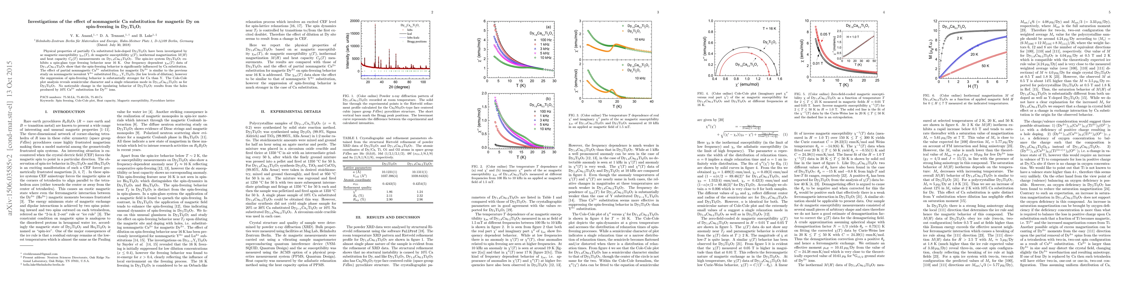 Researchers investigated the effect of nonmagnetic Ca substitution on spin-freezing in Dy2Ti2O7, a spin-ice system that exhibits spin-glass behavior near 16 K.