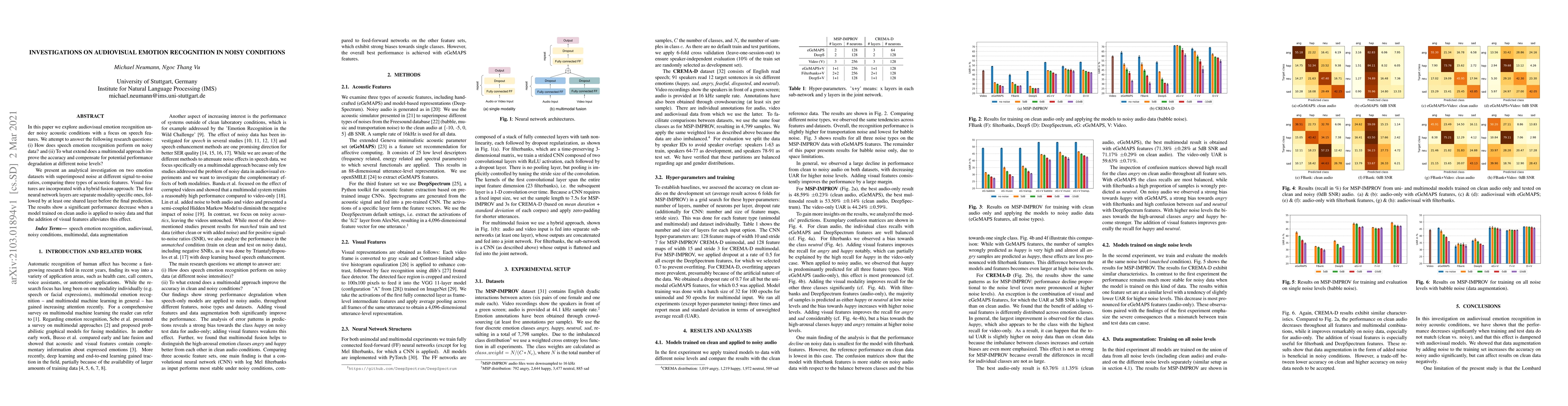 This paper investigates how speech emotion recognition performs under noisy conditions and evaluates if a multimodal approach improves accuracy by combining speech and visual features. Results show a significant performance drop on noisy data but indicate that incorporating visual features can mitigate this decline.