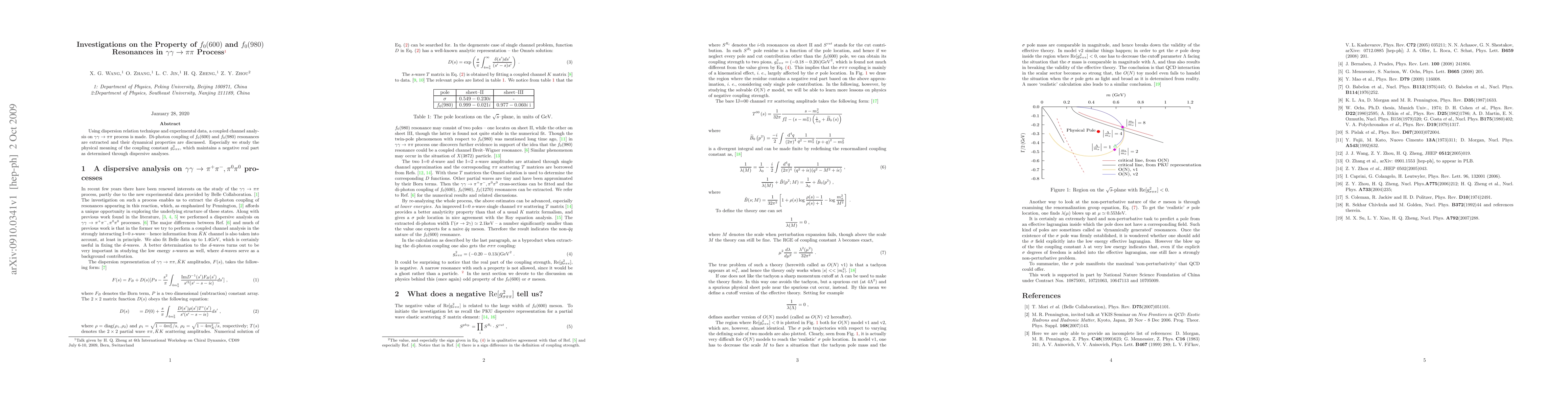 Research investigates the properties of $f_0(600)$ and $f_0(980)$ resonances in a photon-photon to pi-pi process using dispersion relations and experimental data. The study reveals negative real parts for coupling constants, indicating specific physical meanings.