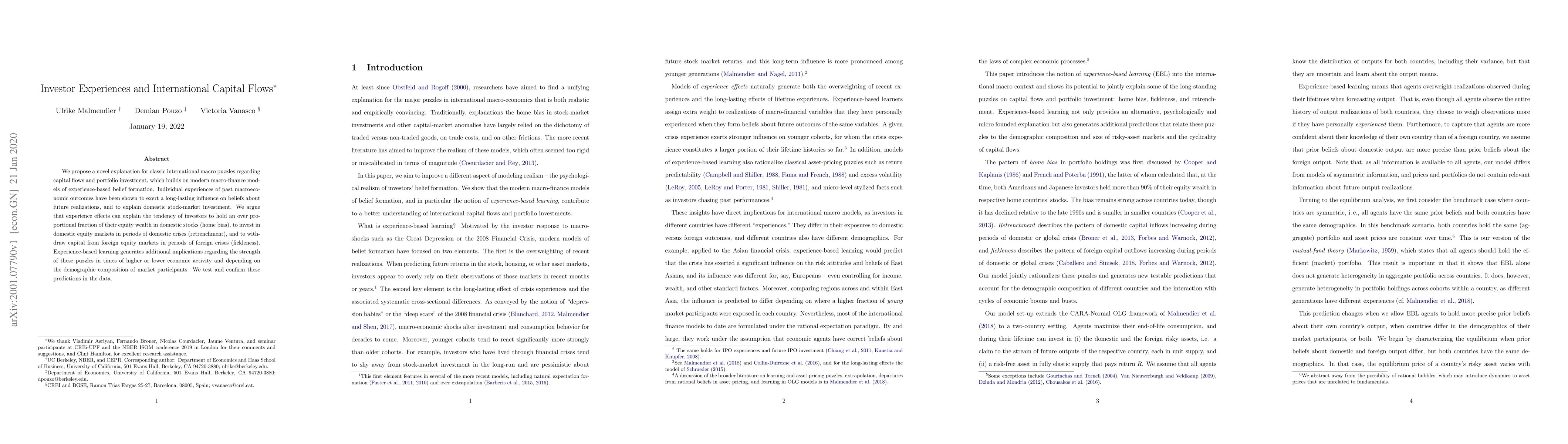 This research contributes to understanding international macro finance by applying insights from experience-based learning to explain empirical regularities in capital flows.