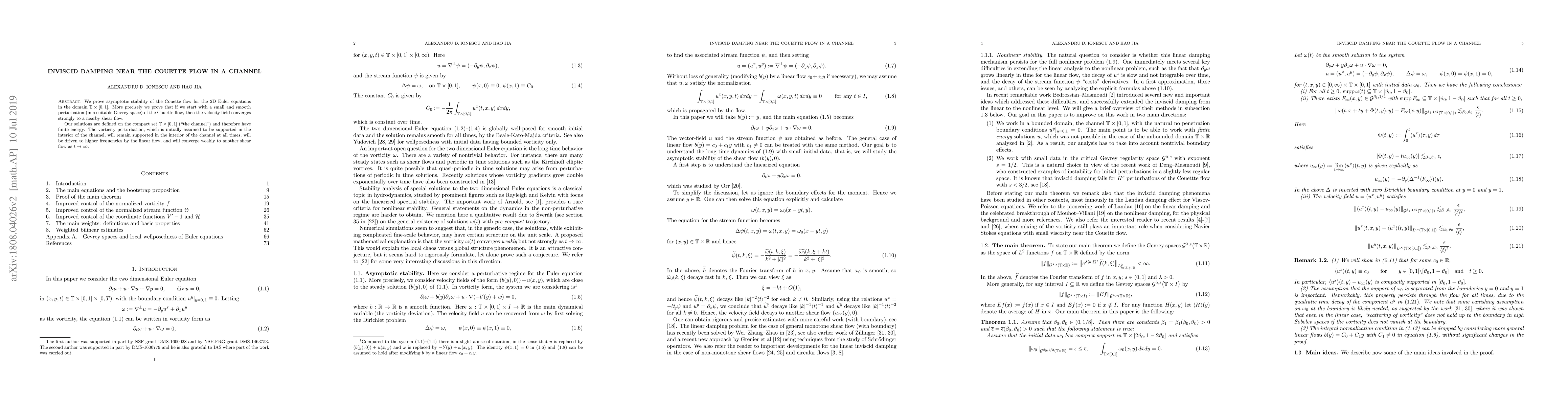 This paper proves the asymptotic stability of shear flows near the Couette flow in a 2D channel for the Euler equations. It demonstrates that small perturbations of the Couette flow converge strongly to nearby shear flows, with vorticity driven to higher frequencies and ultimately converging weakly to zero.