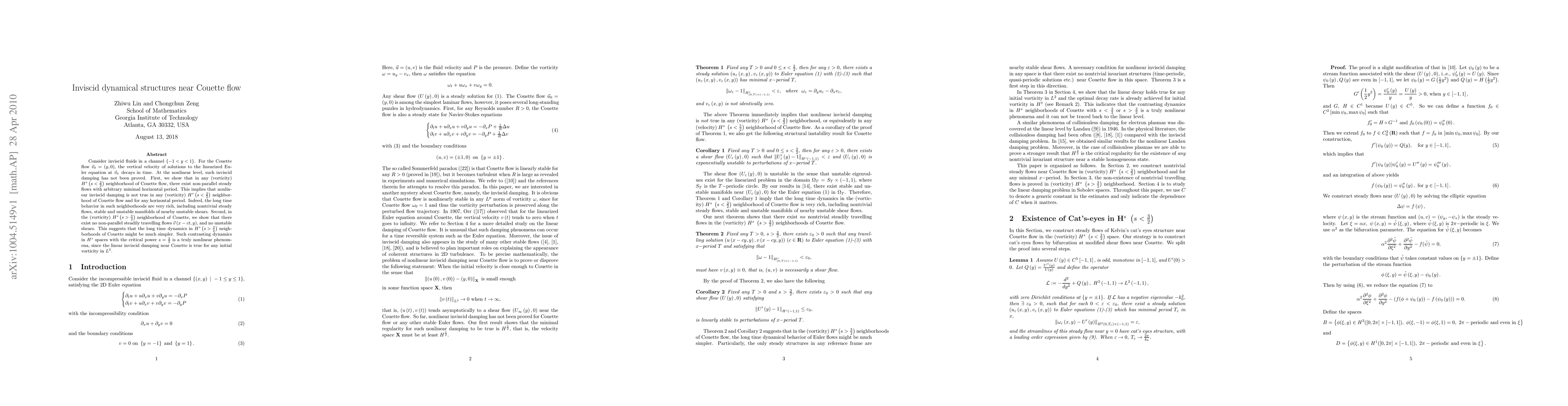 This paper investigates the dynamics of inviscid fluids near Couette flow in a channel, demonstrating that nonlinear inviscid damping does not hold in (vorticity) H^{s}(s<(3/2)) neighborhoods, where rich long-time behaviors exist. Conversely, in (vorticity) H^{s}(s>(3/2)) neighborhoods, no non-parallel steady flows or unstable shears are found, suggesting simpler long-time dynamics.