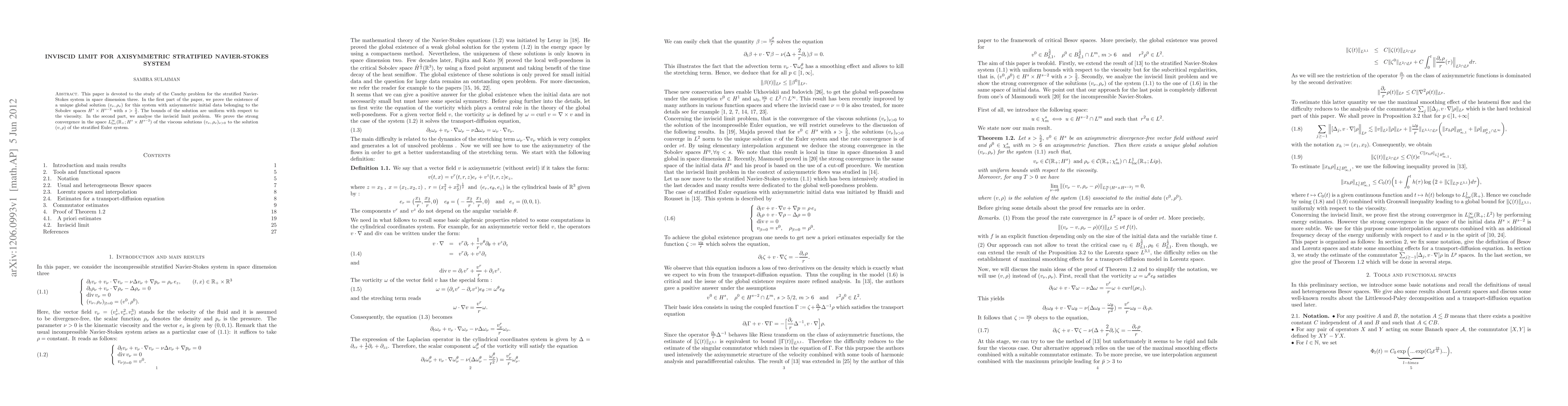 This paper establishes a unique global solution for an axisymmetric stratified Navier-Stokes system with specific initial data bounds, and shows that the viscous solutions converge to the inviscid Euler system's solution in a certain space.