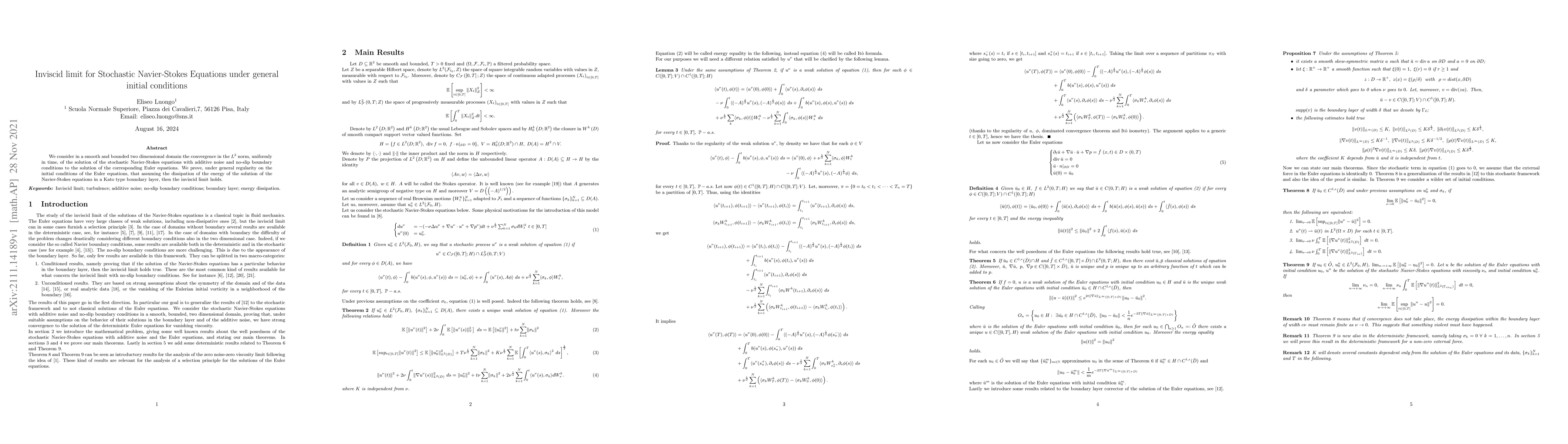 This paper investigates the convergence of stochastic Navier-Stokes equations to Euler equations in a two-dimensional domain, showing that under general initial conditions and assuming dissipation in a boundary layer, the inviscid limit holds uniformly in time.