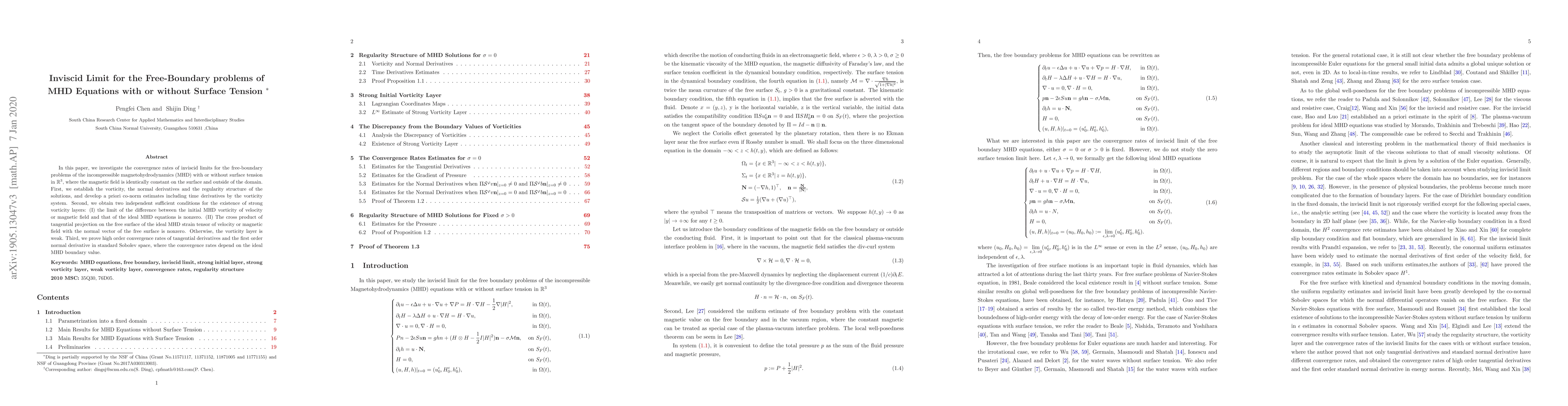 This paper examines the inviscid limit convergence rates for free-boundary problems in incompressible magnetohydrodynamics (MHD) with or without surface tension, establishing conditions for strong and weak vorticity layers and proving high-order convergence rates dependent on ideal MHD boundary values.