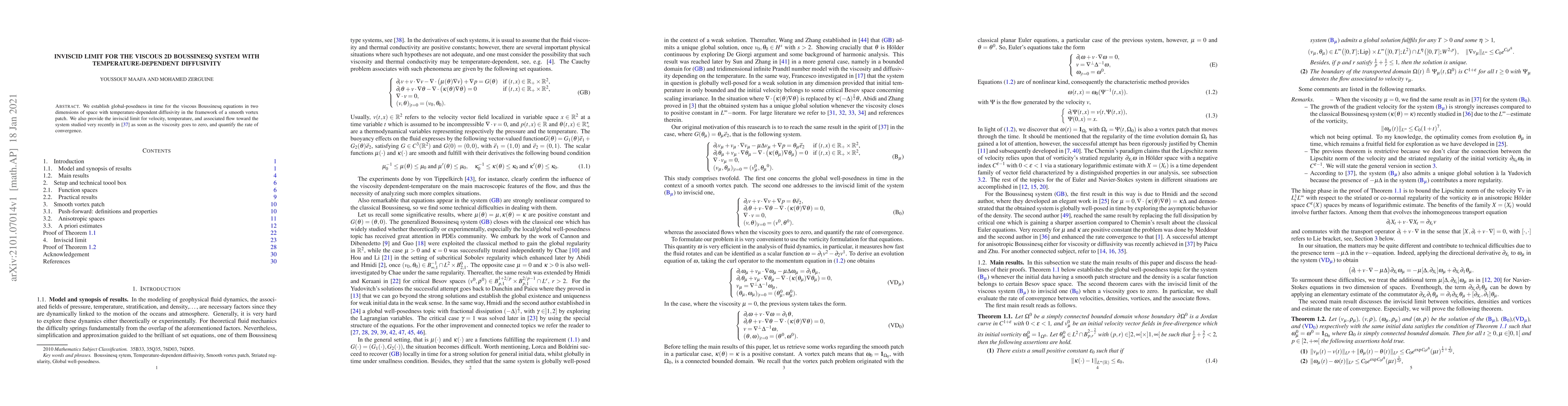 We establish global-posedness in time for the viscous Boussinesq equations in two dimensions of space with temperature-dependent diffusivity in the framework of a smooth vortex patch. We also provide the inviscid limit for velocity, temperature, and associated flow toward the system studied very recently in \cite{Paicu-Zhu} as soon as the viscosity goes to zero, and quantify the rate of convergence.