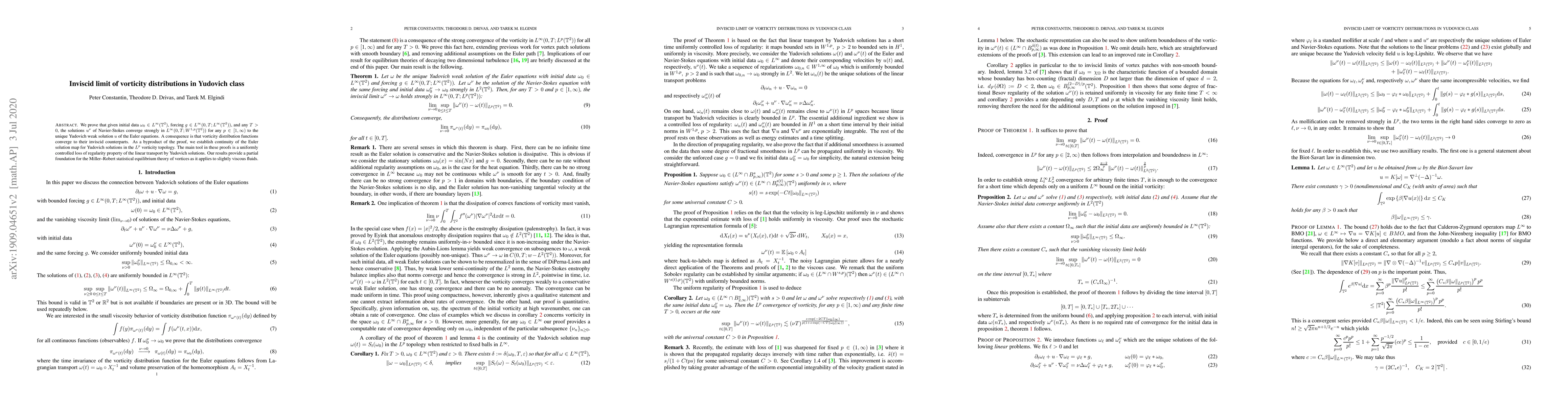 We prove that given initial data $\omega_0\in L^\infty(\mathbb{T}^2)$, forcing $g\in L^\infty(0,T; L^\infty(\mathbb{T}^2))$, and any $T>0$, the solutions $u^\nu$ of Navier-Stokes converge strongly in $L^\infty(0,T;W^{1,p}(\mathbb{T}^2))$ for any $p\in [1,\infty)$ to the unique Yudovich weak solution $u$ of the Euler equations. A consequence is that vorticity distribution functions converge to their inviscid counterparts. As a byproduct of the proof, we establish continuity of the Euler solution map for Yudovich solutions in the $L^p$ vorticity topology. The main tool in these proofs is a uniformly controlled loss of regularity property of the linear transport by Yudovich solutions. Our results provide a partial foundation for the Miller--Robert statistical equilibrium theory of vortices as it applies to slightly viscous fluids.