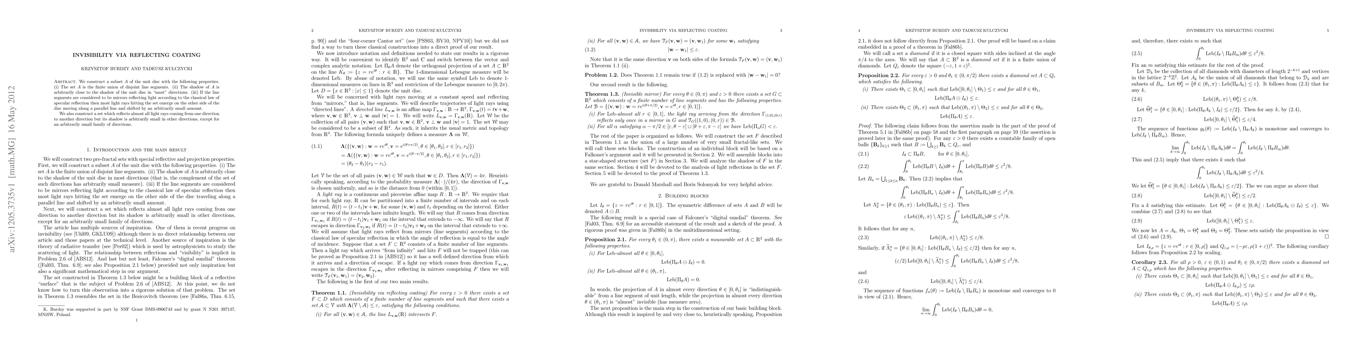 We construct a subset $A$ of the unit disc with the following properties. (i) The set $A$ is the finite union of disjoint line segments. (ii) The shadow of $A$ is arbitrarily close to the shadow of the unit disc in "most" directions. (iii) If the line segments are considered to be mirrors reflecting light according to the classical law of specular reflection then most light rays hitting the set emerge on the other side of the disc moving along a parallel line and shifted by an arbitrarily small amount. We also construct a set which reflects almost all light rays coming from one direction to another direction but its shadow is arbitrarily small in other directions, except for an arbitrarily small family of directions.