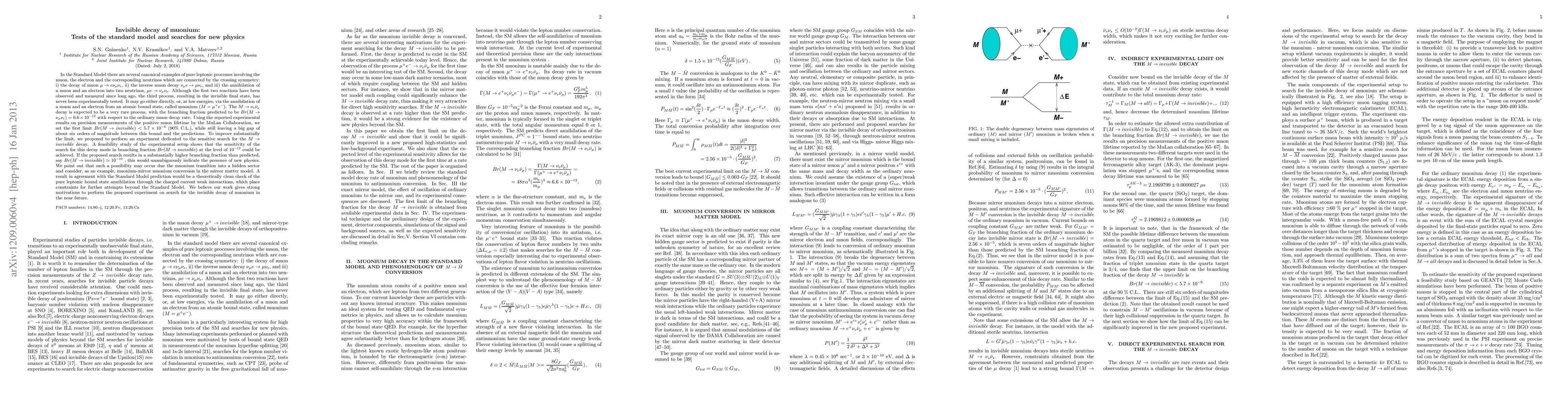 In the Standard Model there are several canonical examples of pure leptonic processes involving the muon, the electron and the corresponding neutrinos which are connected by the crossing symmetry: i) the decay of muon, ii) the inverse muon decay, and iii) the annihilation of a muon and an electron into two neutrinos. Although the first two reactions have been observed and measured since long ago, the third process, resulting in the invisible final state, has never been experimentally tested. It may go either directly, or, at low energies, via the annihilation of a muon and an electron from an atomic bound state, called muonium (M=\mu^+e^-). The M\to \nu_\mu \nu_e decay is expected to be a very rare process, with the branching fraction predicted to be Br(M\to \nu_\mu\nu_e) = 6.6 10^{-12} with respect to the ordinary muon decay rate. Using the reported experimental results on precision measurements of the positive muon lifetime by the MuLan Collaboration, we set the first limit Br(M \to invisible) < 5.7 10^{-6}, while still leaving a big gap of about six orders of magnitude between this bound and the predictions. To improve substantially the limit, we proposed to perform an experiment dedicated to the sensitive search for the M\to invisible decay. A feasibility study of the experimental setup shows that the sensitivity of the search for this decay mode in branching fraction Br(M\to invisible) at the level of 10^{-12} could be achieved. If the proposed search results in a substantially higher branching fraction than predicted, say Br(M \to invisible) < 10^{-10}, this would unambiguously indicate the presence of new physics. We point out that such a possibility may occur due the muonium-mirror muonium conversion in the mirror matter model. A result in agreement with the Standard Model prediction would be a clean check of the pure leptonic bound state annihilation.