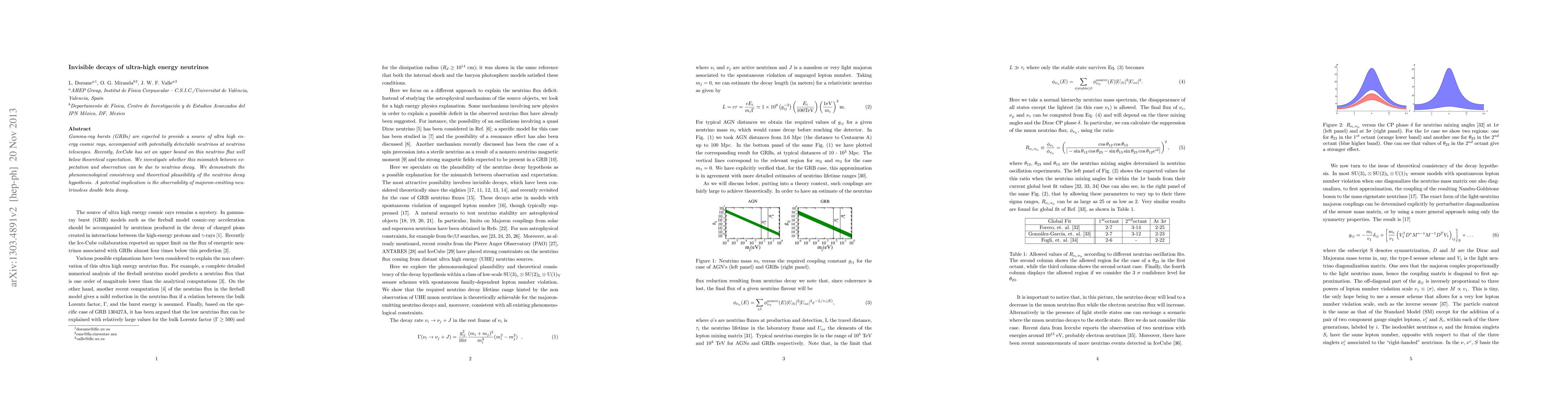 Researchers investigate whether ultra-high energy neutrino decay explains the discrepancy between predicted and observed neutrino fluxes from gamma-ray bursts. They find theoretical plausibility in the hypothesis, potentially revealing observable signs of majoron-emitting neutrinoless double beta decay.