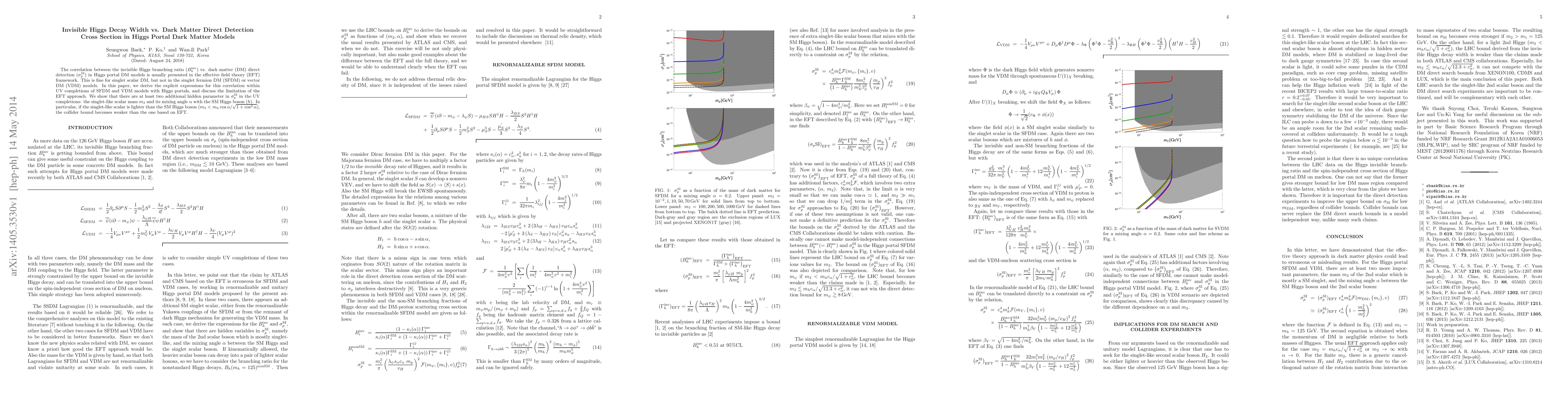 Researchers derived explicit expressions for invisible Higgs decay width vs dark matter direct detection cross in UV completions of singlet fermion DM and vector DM models with Higgs portals, revealing additional hidden parameters.