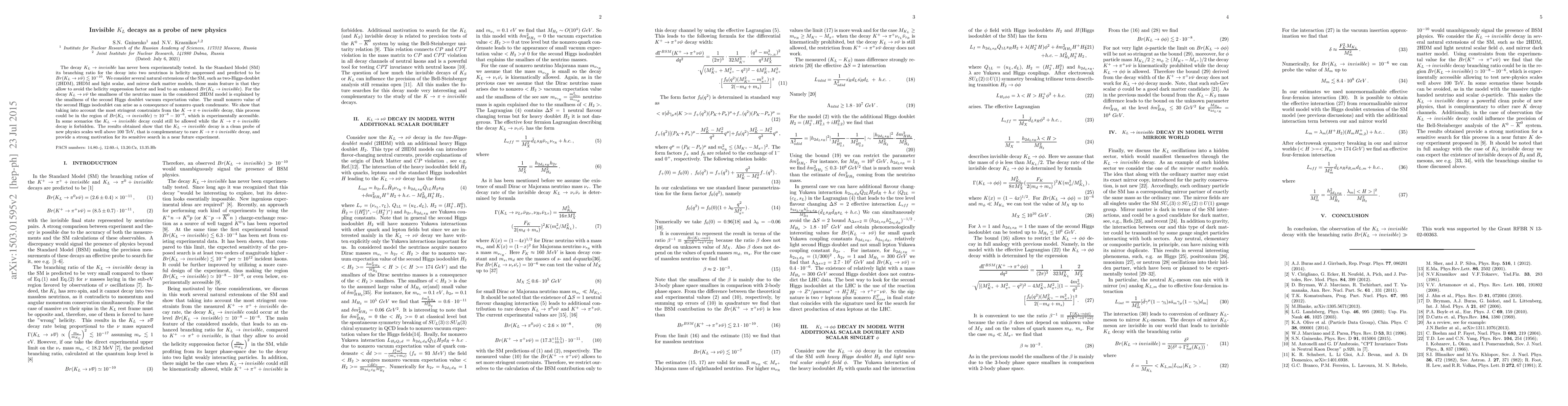 Researchers explored the decay of K_L particles into invisible matter as a probe for new physics, finding that it could be detectable with high precision and provide insights into scales above 100 TeV.