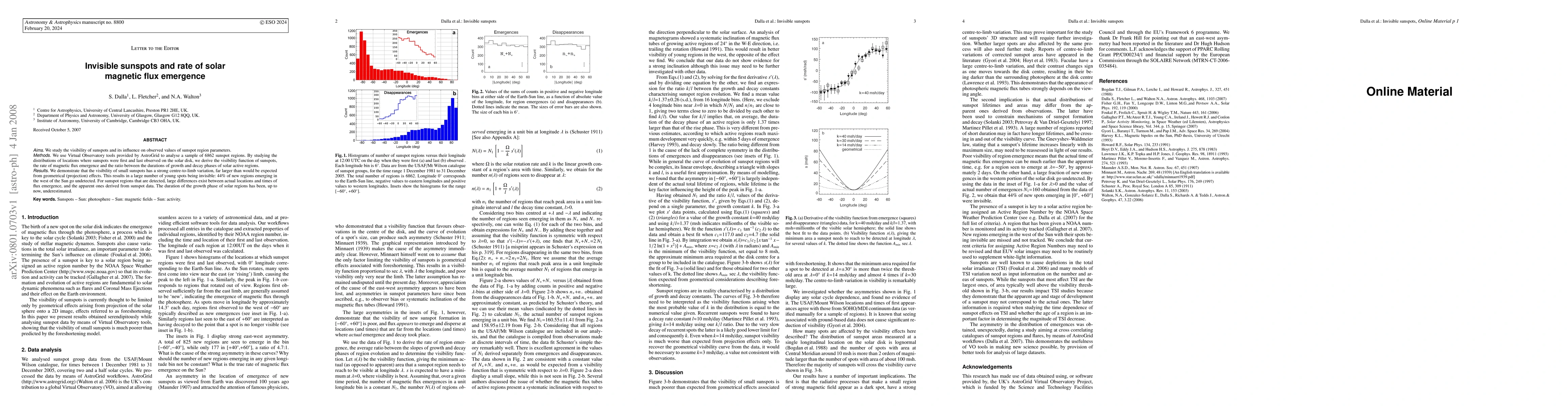 We study the visibility of sunspots and its influence on observed values of sunspot region parameters. We use Virtual Observatory tools provided by AstroGrid to analyse a sample of 6862 sunspot regions. By studying the distributions of locations where sunspots were first and last observed on the solar disk, we derive the visibility function of sunspots, the rate of magnetic flux emergence and the ratio between the durations of growth and decay phases of solar active regions. We demonstrate that the visibility of small sunspots has a strong center-to-limb variation, far larger than would be expected from geometrical (projection) effects. This results in a large number of young spots being invisible: 44% of new regions emerging in the West of the Sun go undetected. For sunspot regions that are detected, large differences exist between actual locations and times of flux emergence, and the apparent ones derived from sunspot data. The duration of the growth phase of solar regions has been up to now underestimated.