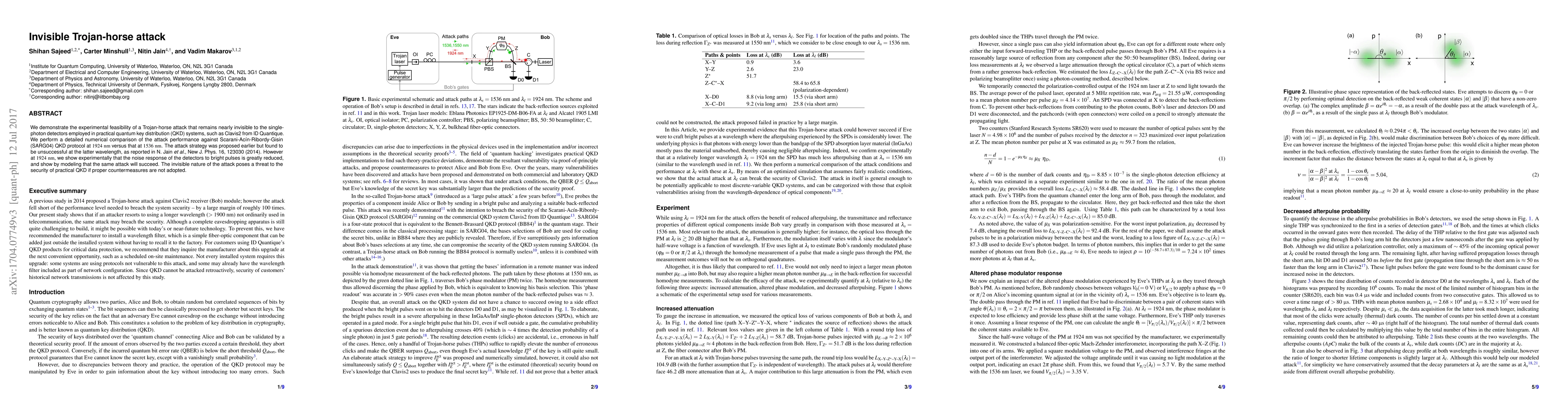 We demonstrate the experimental feasibility of a Trojan-horse attack that remains nearly invisible to the single-photon detectors employed in practical quantum key distribution (QKD) systems, such as Clavis2 from ID Quantique. We perform a detailed numerical comparison of the attack performance against Scarani-Acin-Ribordy-Gisin (SARG04) QKD protocol at 1924nm versus that at 1536nm. The attack strategy was proposed earlier but found to be unsuccessful at the latter wavelength, as reported in N.~Jain et al., New J. Phys. 16, 123030 (2014). However at 1924nm, we show experimentally that the noise response of the detectors to bright pulses is greatly reduced, and show by modeling that the same attack will succeed. The invisible nature of the attack poses a threat to the security of practical QKD if proper countermeasures are not adopted.