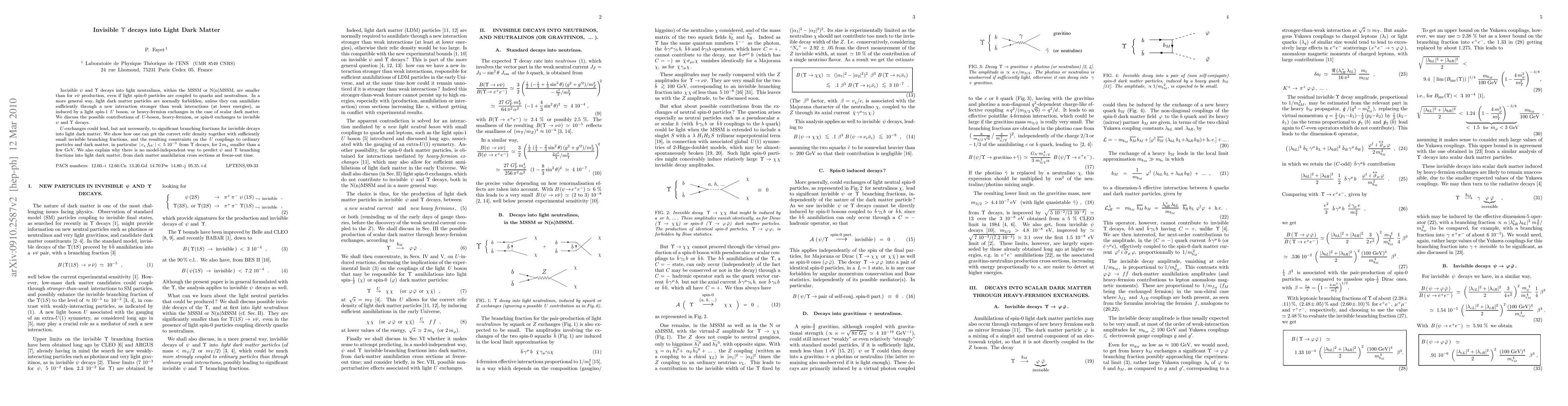 Invisible psi and Upsilon decays into light neutralinos, within the MSSM or N(n)MSSM, are smaller than for nu nubar production, even if light spin-0 particles are coupled to quarks and neutralinos. In a more general way, light dark matter particles are normally forbidden, unless they can annihilate sufficiently through a new interaction stronger than weak interactions (at lower energies), as induced by a light spin-1 U boson, or heavy-fermion exchanges in the case of scalar dark matter. We discuss the possible contributions of U-boson, heavy-fermion, or spin-0 exchanges to invisible psi and Upsilon decays. U-exchanges could lead, but not necessarily, to significant branching fractions for invisible decays into light dark matter. We show how one can get the correct relic density together with sufficiently small invisible branching fractions, and the resulting constraints on the U couplings to ordinary particles and dark matter, in particular |c_chi.f_bV| < 5 10^-3 from Upsilon decays, for 2 m_chi smaller than a few GeV. We also explain why there is no model-independent way to predict psi and Upsilon branching fractions into light dark matter, from dark matter annihilation cross sections at freeze-out time.