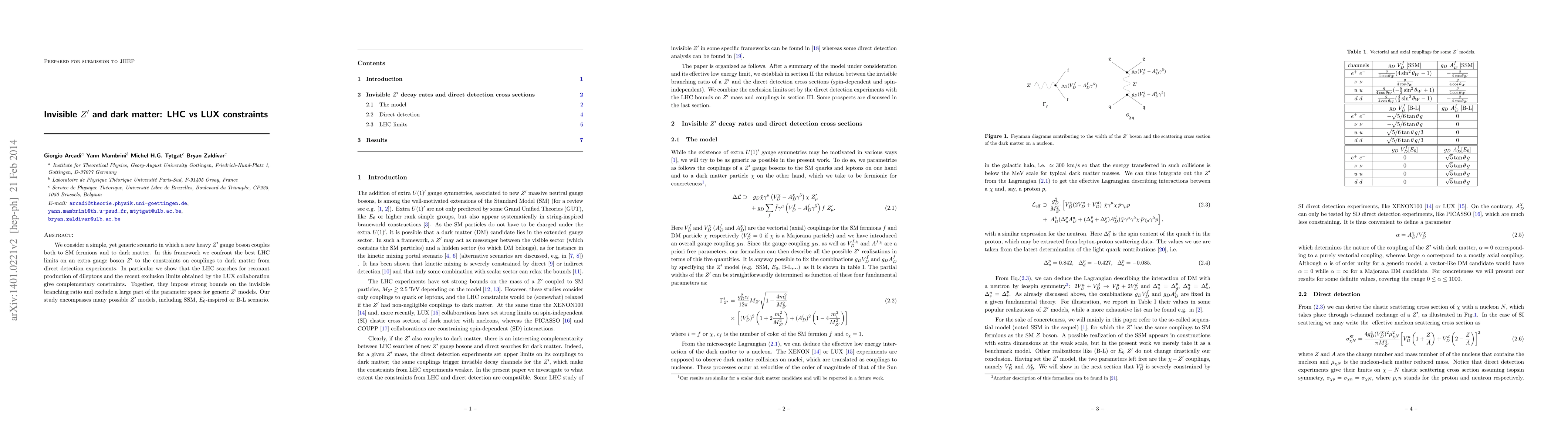 Researchers compared LHC limits on a new gauge boson Z' with constraints from direct detection experiments like LUX, finding complementary bounds on the invisible branching ratio that exclude much of the parameter space for generic Z' models.