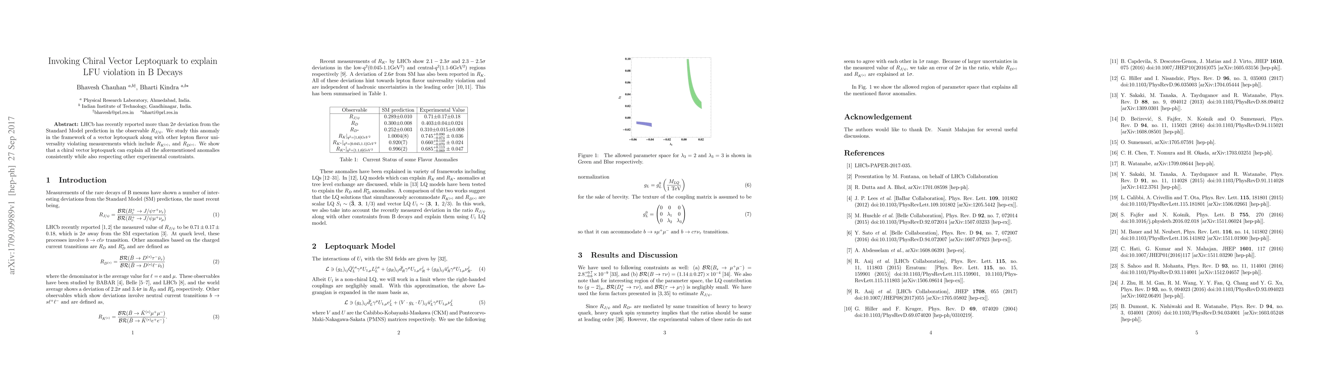 This paper explores how a chiral vector leptoquark can explain the observed $2\sigma$ deviation in $R_{J/\psi}$ and other lepton flavor universality violations in B decays, aligning with experimental constraints. The study demonstrates that this leptoquark model can consistently account for these anomalies.