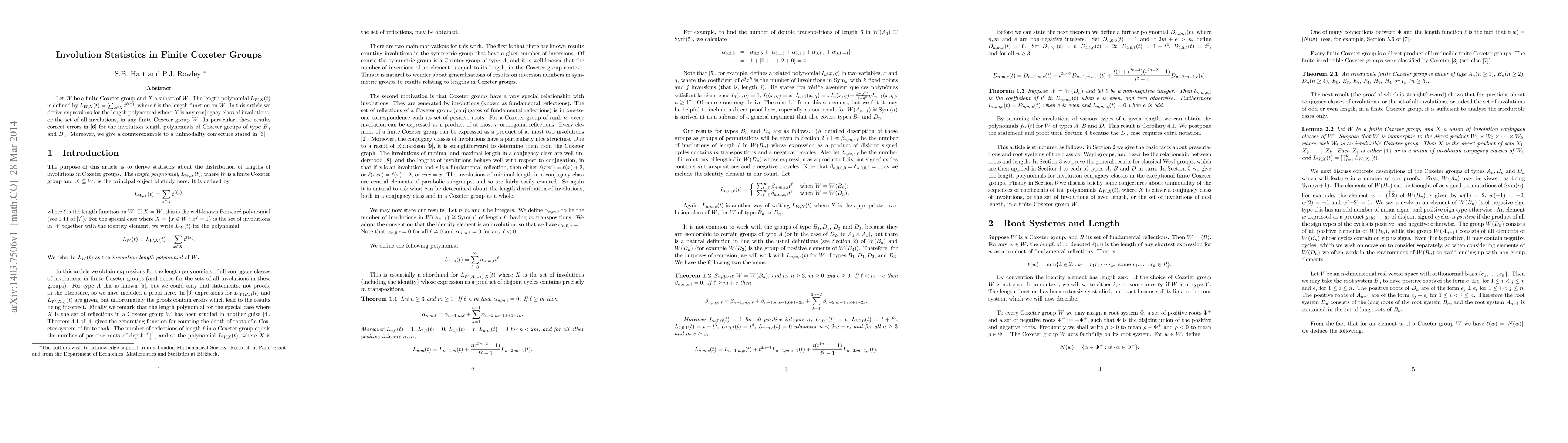 This paper derives correct expressions for the length polynomial for conjugacy classes of involutions in finite Coxeter groups, correcting prior errors in Dukes' work on Coxeter groups of type $B_n$ and $D_n$. It also provides a counterexample disproving a unimodality conjecture made by Dukes.