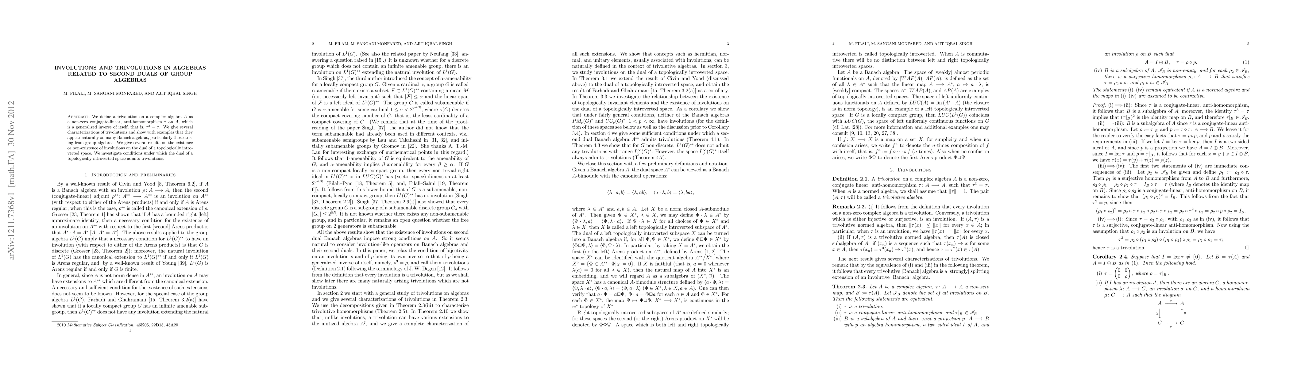 We define a trivolution on a complex algebra $A$ as a non-zero conjugate-linear, anti-homomorphism $\tau$ on $A$, which is a generalized inverse of itself, that is, $\tau^3=\tau$. We give several characterizations of trivolutions and show with examples that they appear naturally on many Banach algebras, particularly those arising from group algebras. We give several results on the existence or non-existence of involutions on the dual of a topologically introverted space. We investigate conditions under which the dual of a topologically introverted space admits trivolutions.