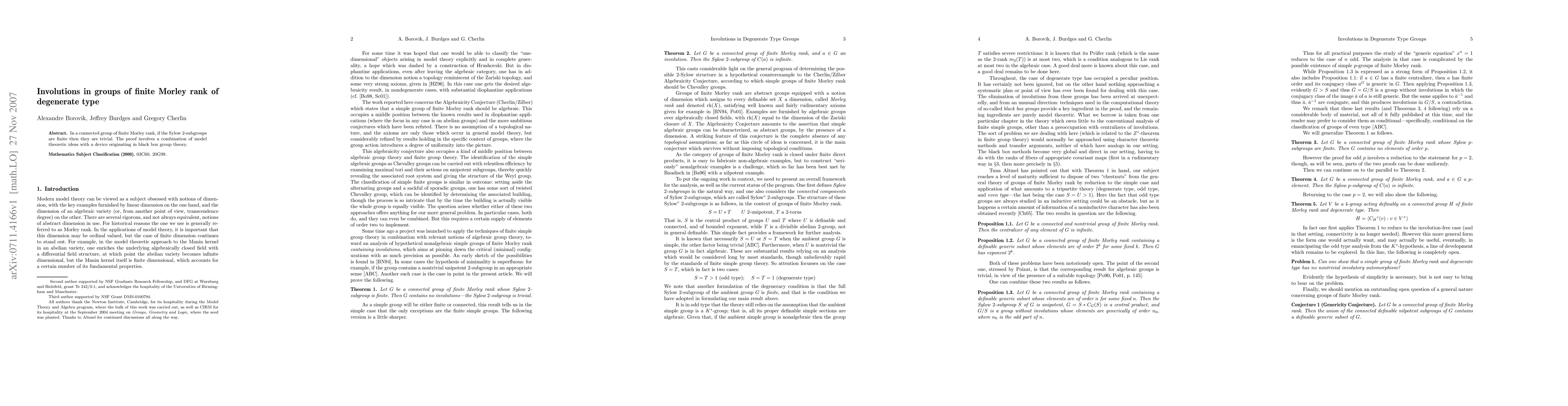 This paper establishes a variant of the Feit-Thompson theorem for simple groups of finite Morley rank, specifically proving that connected groups of finite Morley rank with finite Sylow 2-subgroups have trivial Sylow 2-subgroups.