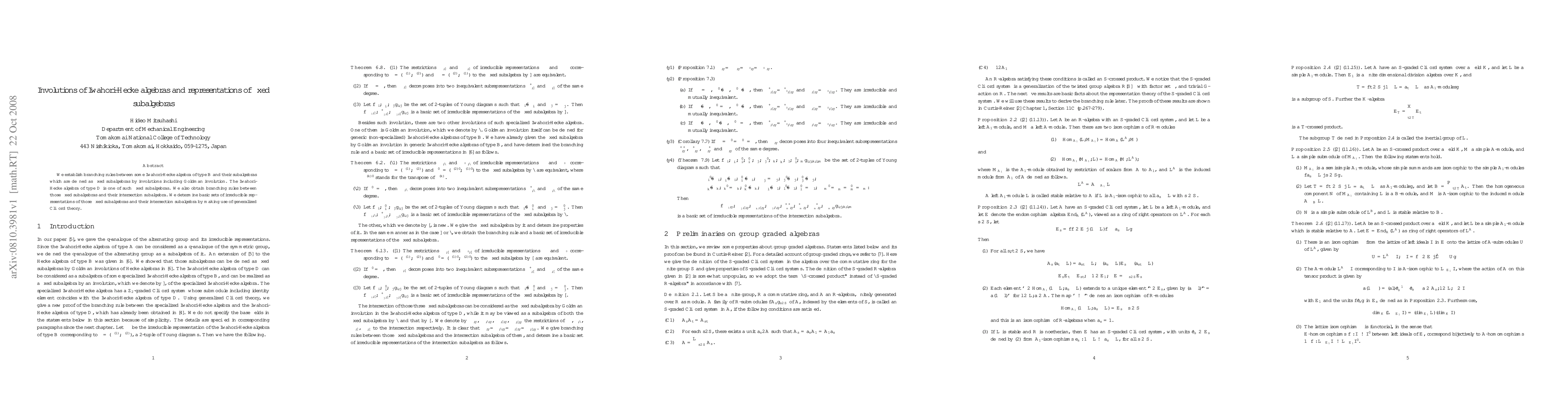This paper establishes branching rules between Iwahori-Hecke algebras of type B and their fixed subalgebras defined by involutions, including the Goldman involution. It also determines irreducible representations for these fixed and intersection subalgebras using generalized Clifford theory.