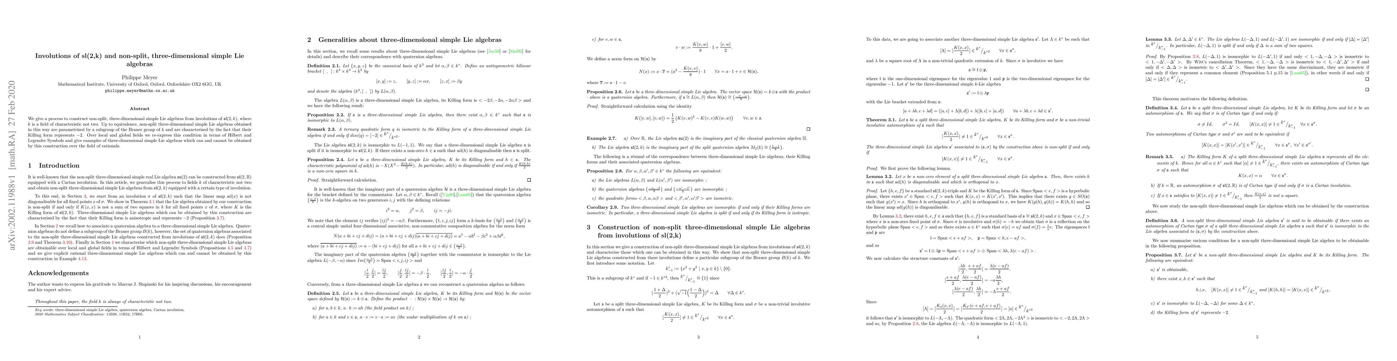 This paper constructs non-split, three-dimensional simple Lie algebras from involutions of sl(2,k), showing they are parametrised by a subgroup of the Brauer group of k. The algebras' Killing form represents -2, which is re-expressed using Hilbert and Legendre symbols for local and global fields, with examples provided for rationals.