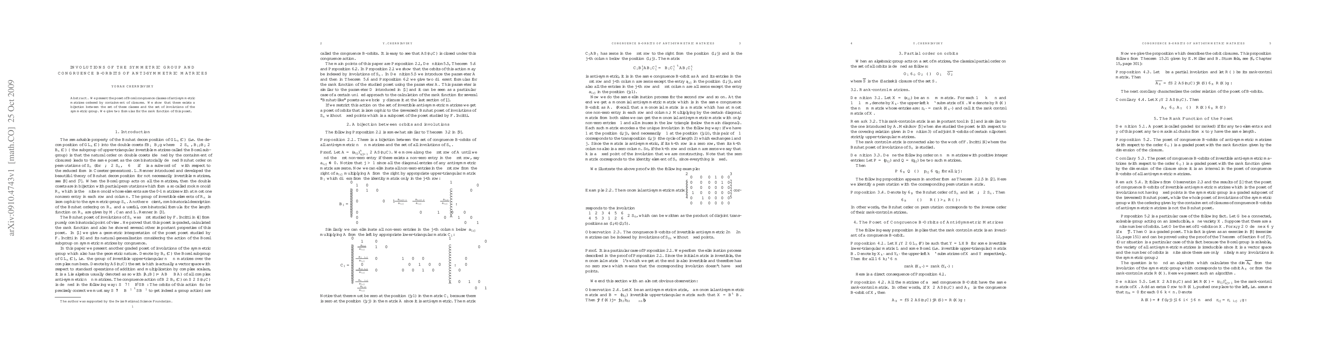 This paper establishes a bijection between the Borel congruence classes of anti-symmetric matrices and the involutions of the symmetric group. It also provides two formulas for the rank function of the poset of these classes, ordered by containment of closures.