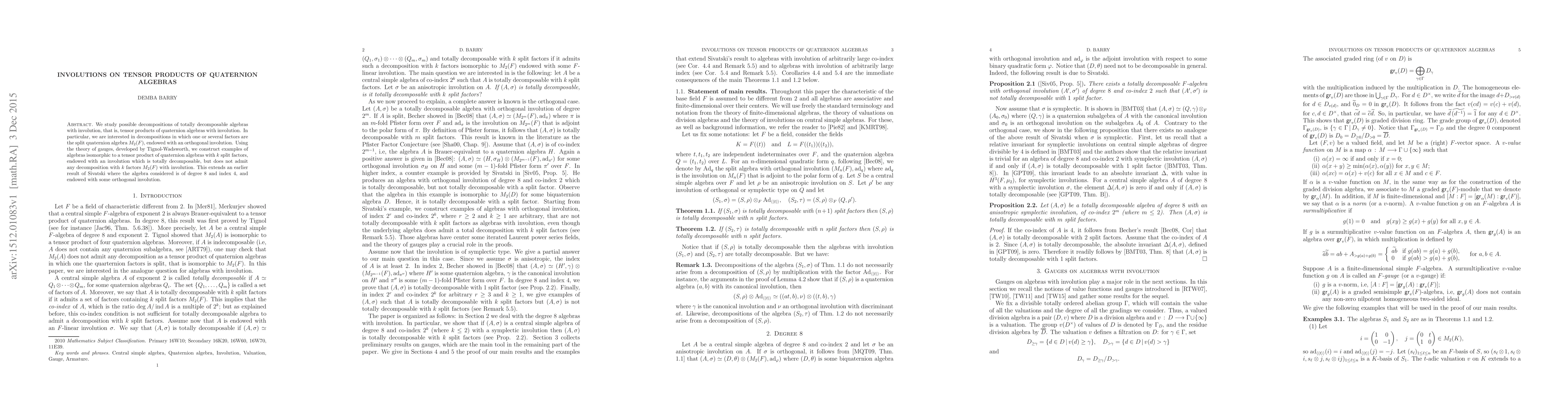 We study possible decompositions of totally decomposable algebras with involution, that is, tensor products of quaternion algebras with involution. In particular, we are interested in decompositions in which one or several factors are the split quaternion algebra $M_2(F)$, endowed with an orthogonal involution. Using the theory of gauges, developed by Tignol-Wadsworth, we construct examples of algebras isomorphic to a tensor product of quaternion algebras with $k$ split factors, endowed with an involution which is totally decomposable, but does not admit any decomposition with $k$ factors $M_2(F)$ with involution. This extends an earlier result of Sivatski where the algebra considered is of degree $8$ and index $4$, and endowed with some orthogonal involution.