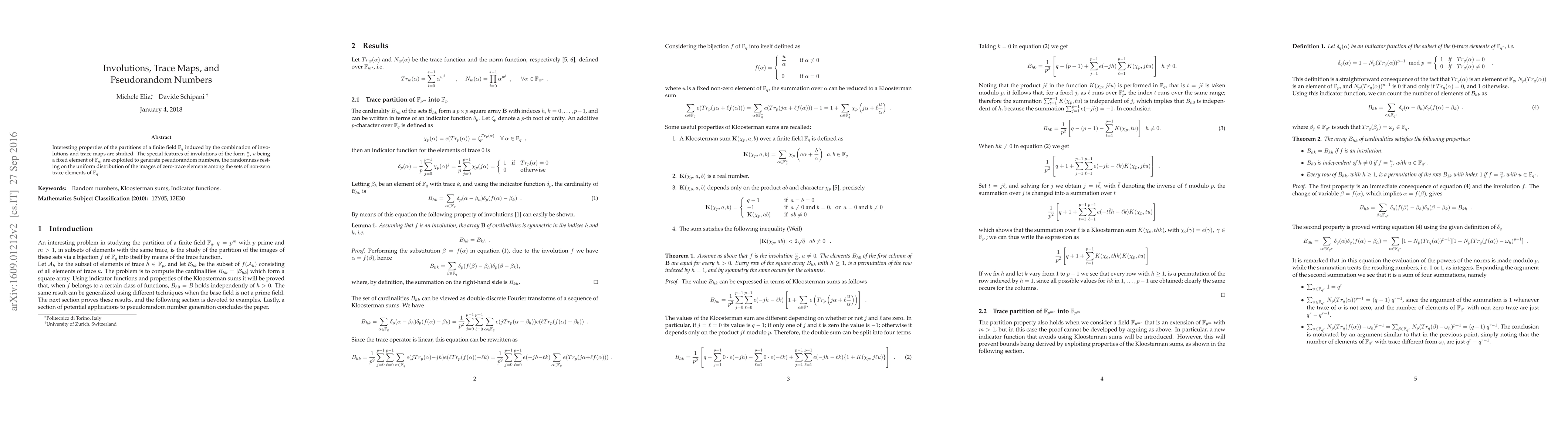 This paper explores a new method to generate pseudorandom numbers using involutions and trace maps in finite fields, which relies on the uniform distribution of zero-trace elements among non-zero trace elements.