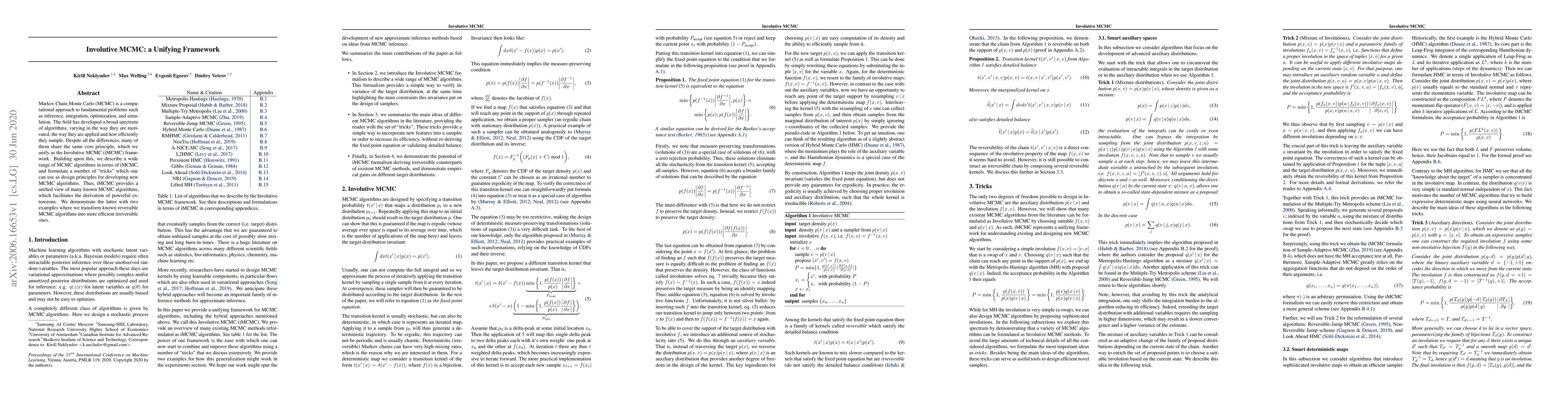 The Involutive MCMC (iMCMC) framework unifies various MCMC algorithms under a common principle, offering a new perspective for developing efficient sampling methods. The paper also introduces design principles for creating new MCMC algorithms, demonstrating its utility by transforming reversible MCMC methods into more efficient irreversible versions.