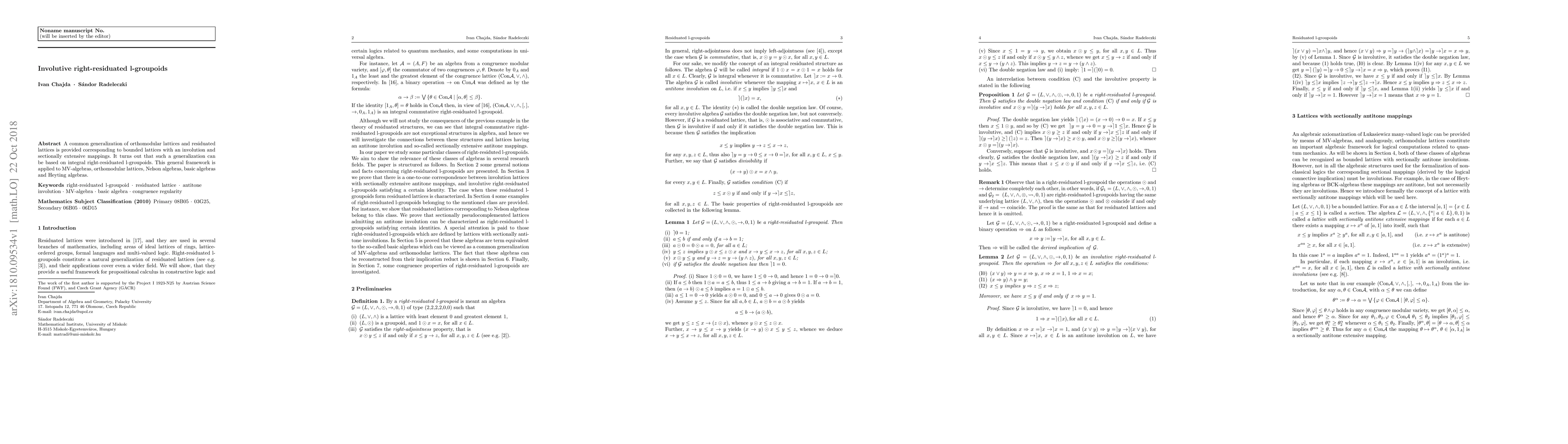 A common generalization of orthomodular lattices and residuated lattices is provided corresponding to bounded lattices with an involution and sectionally extensive mappings. It turns out that such a generalization can be based on integral right-residuated l-groupoids. This general framework is applied to MV-algebras,orthomodular lattices, Nelson algebras, basic algebras and Heyting algebras.