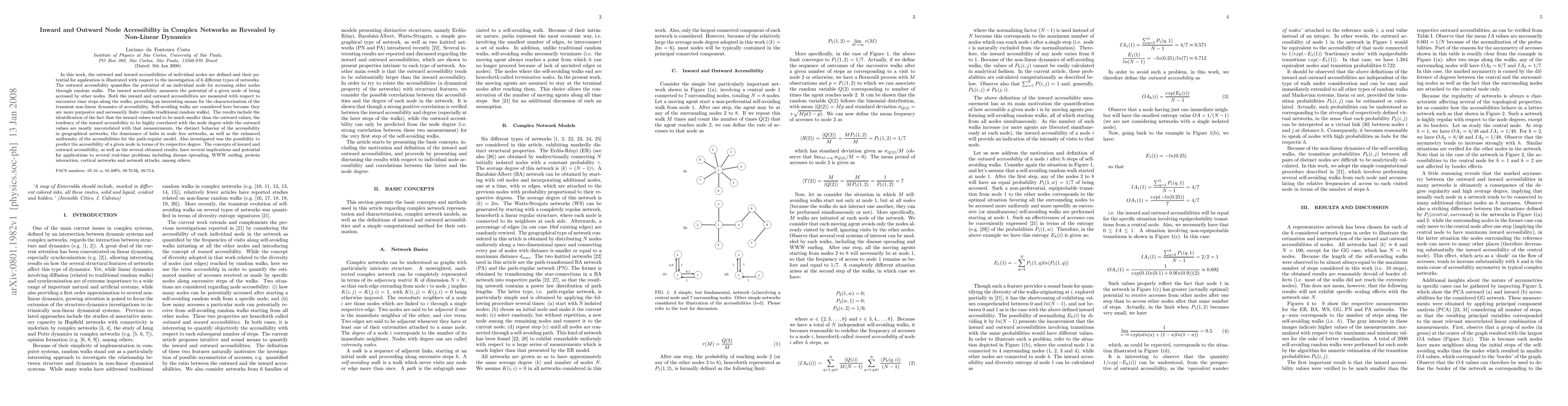 In this work, the outward and inward accessibilities of individual nodes are defined and their potential for application is illustrated with respect to the investigation of 6 different types of networks. The outward accessibility quantifies the potential of an individual node for accessing other nodes through random walks. The inward accessibility measures the potential of a given node of being accessed by other nodes. Both the inward and outward accessibilities are measured with respect to successive time steps along the walks, providing an interesting means for the characterization of the transient non-linear dynamics of accessibility. Self-avoiding walks are considered here because they are more purposive and necessarily finite (unlike traditional random walks). The results include the identification of the fact that the inward values tend to be much smaller than the outward values, the tendency of the inward accessibility to be highly correlated with the node degree while the outward values are mostly uncorrelated with that measurements, the distinct behavior of the accessibility in geographical networks, the dominance of hubs in scale free networks, as well as the enhanced uniformity of the accessibilities for the path-regular model. Also investigated was the possibility to predict the accessibility of a given node in terms of its respective degree. The concepts of inward and outward accessibility, as well as the several obtained results, have several implications and potential for applications to several real-time problems including disease spreading, WWW surfing, protein interaction, cortical networks and network attacks, among others.