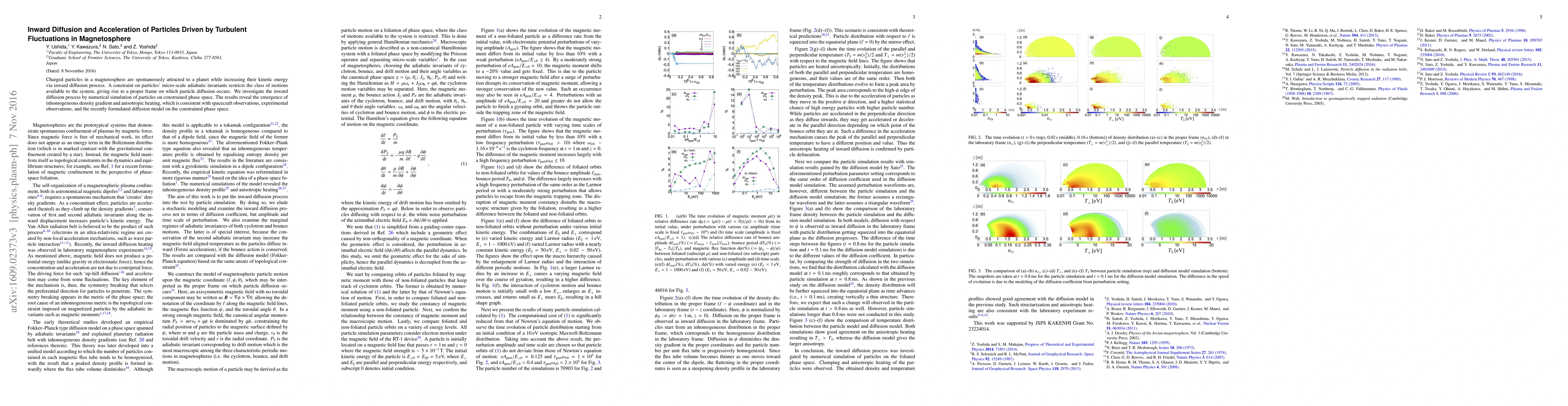 Charged particles in a magnetosphere are spontaneously attracted to a planet while increasing their kinetic energy via inward diffusion process. A constraint on particles' micro-scale adiabatic invariants restricts the class of motions available to the system, giving rise to a proper frame on which particle diffusion occurs. We investigate the inward diffusion process by numerical simulation of particles on constrained phase space. The results reveal the emergence of inhomogeneous density gradient and anisotropic heating, which is consistent with spacecraft observations, experimental observations, and the recently formulated diffusion model on the constrained phase space.