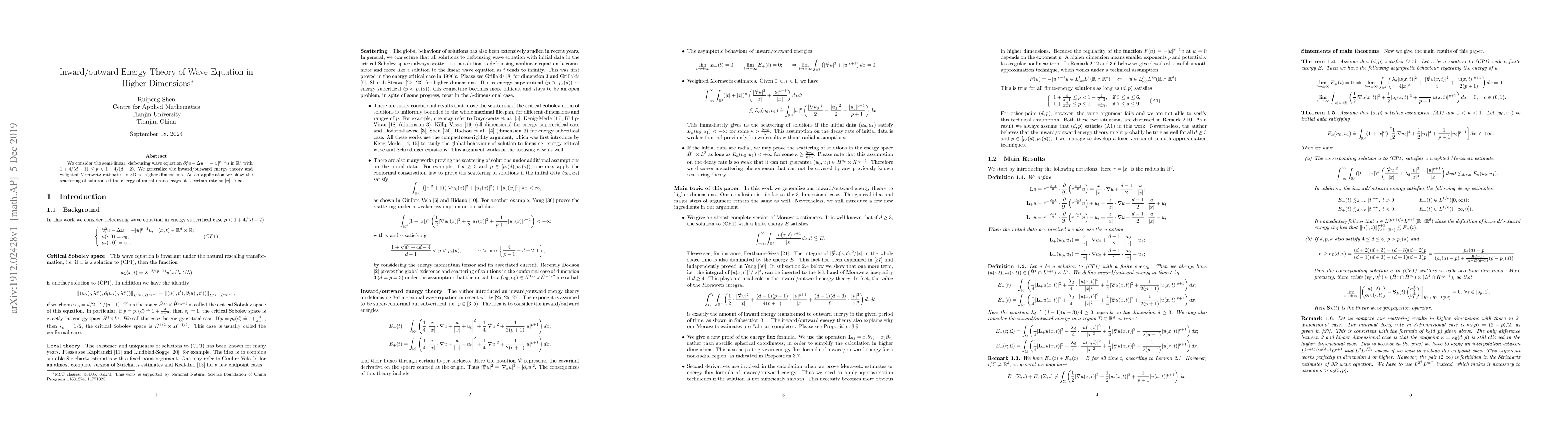 This research paper generalizes inward/outward energy theory to higher dimensions for a specific type of wave equation in 3D space, leading to the scattering of solutions with certain conditions on initial data.