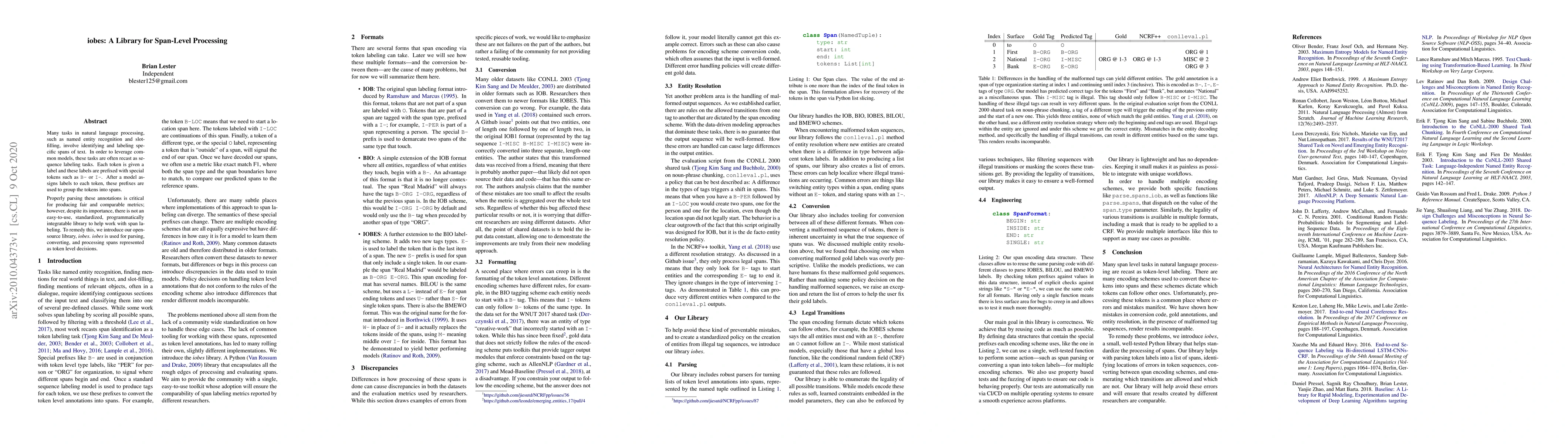 Researchers introduce iobes, a library for span-level processing, to help with parsing, converting, and processing text spans used in natural language processing tasks like named entity recognition and slot-filling.