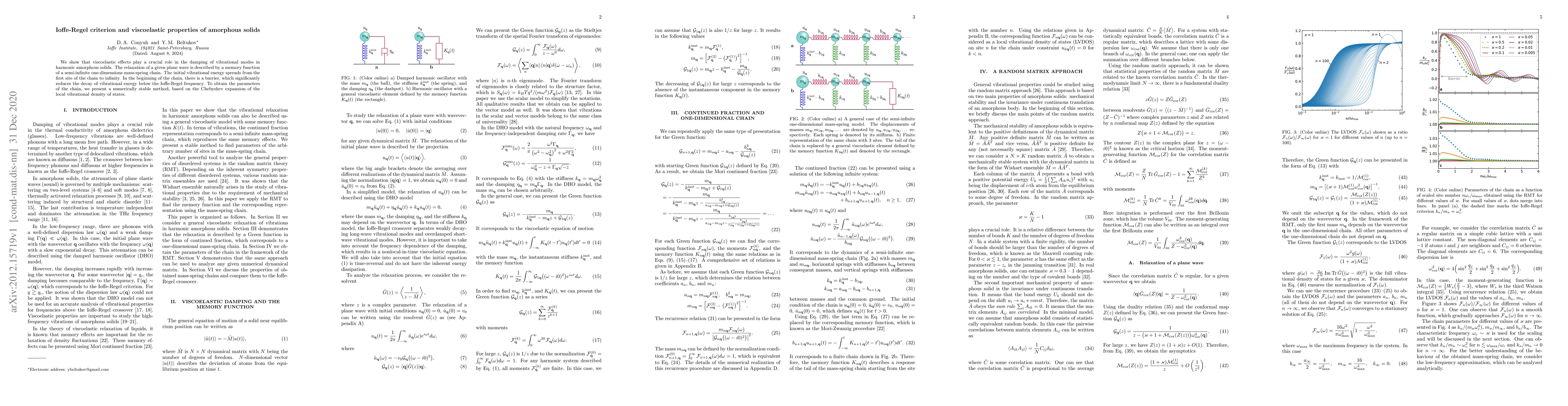 This paper demonstrates that viscoelastic effects are vital for damping vibrational modes in amorphous solids, using a memory function model for a one-dimensional mass-spring chain. A numerical method based on Chebyshev expansion is introduced to determine chain parameters, revealing a significant barrier effect below the Ioffe-Regel frequency.