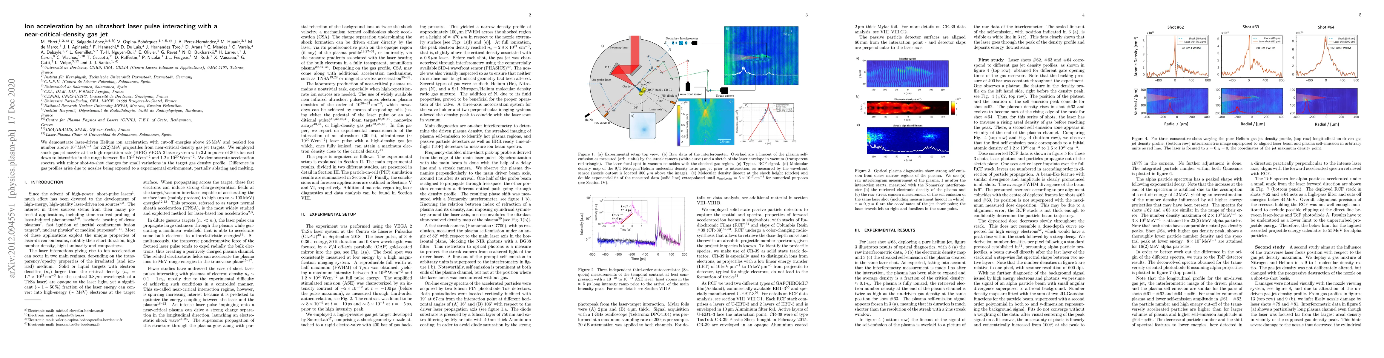 This study demonstrates laser-driven Helium ion acceleration achieving cut-off energies above 25 MeV using ultrashort laser pulses interacting with near-critical-density gas jet targets. The experiment shows stable acceleration spectra despite variations in gas density profiles due to nozzle ablation and melting.