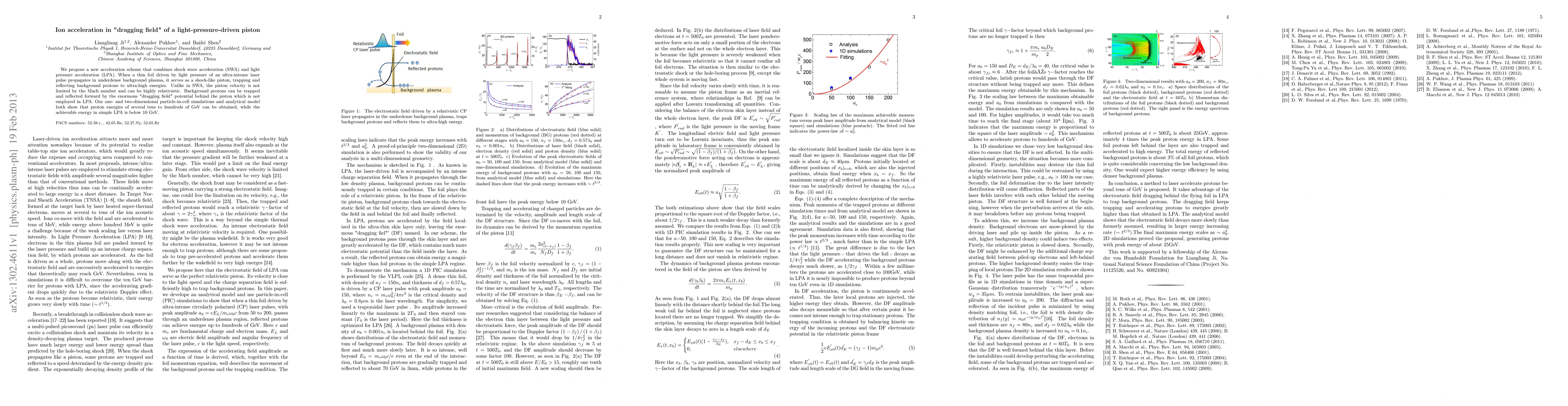 We propose a new acceleration scheme that combines shock wave acceleration (SWA) and light pressure acceleration (LPA). When a thin foil driven by light pressure of an ultra-intense laser pulse propagates in underdense background plasma, it serves as a shock-like piston, trapping and reflecting background protons to ultra-high energies. Unlike in SWA, the piston velocity is not limited by the Mach number and can be highly relativistic. Background protons can be trapped and reflected forward by the enormous "dragging field" potential behind the piston which is not employed in LPA. Our one- and two-dimensional particle-in-cell simulations and analytical model both show that proton energies of several tens to hundreds of GeV can be obtained, while the achievable energy in simple LPA is below 10 GeV.