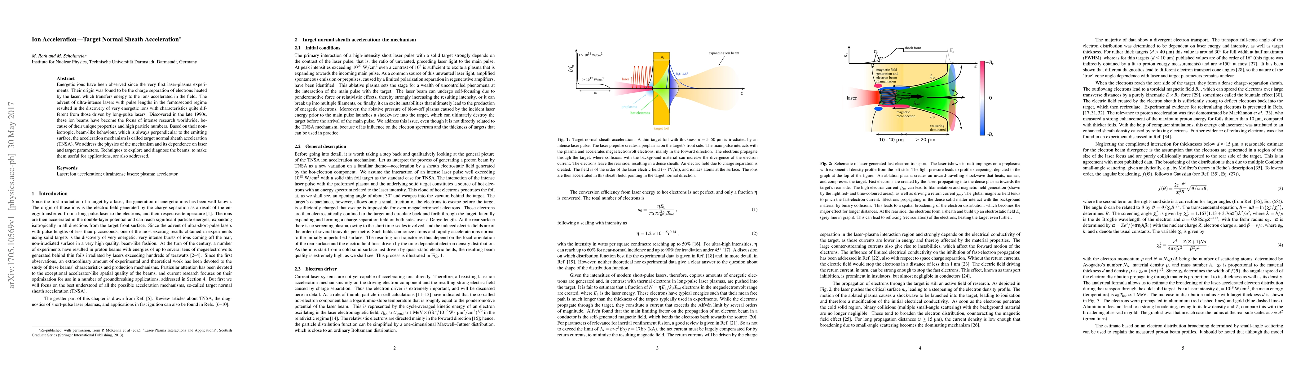 Energetic ions have been observed since the very first laser-plasma experiments.Their origin was found to be the charge separation of electrons heated by thelaser, which transfers energy to the ions accelerated in the field. The adventof ultra-intense lasers with pulse lengths in the femtosecond regime resulted inthe discovery of very energetic ions with characteristics quite different fromthose driven by long-pulse lasers. Discovered in the late 1990s, these ion beamshave become the focus of intense research worldwide, because of their uniqueproperties and high particle numbers. Based on their non-isotropic, beam-likebehaviour, which is always perpendicular to the emitting surface, theacceleration mechanism is called target normal sheath acceleration (TNSA). Weaddress the physics of the mechanism and its dependence on laser and targetparameters. Techniques to explore and diagnose the beams, to make them usefulfor applications, are also addressed.
