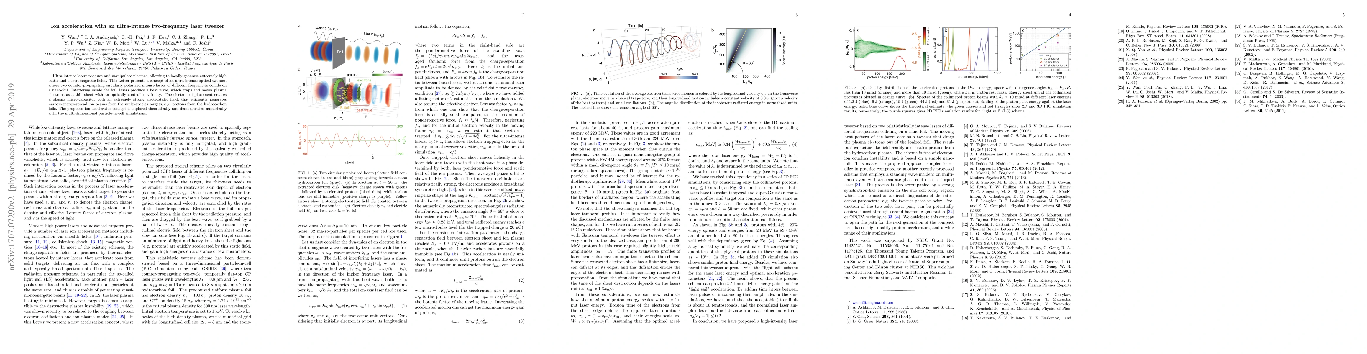 This paper proposes an ultra-intense optical tweezer using two counter-propagating lasers to create a beat wave that traps and moves plasma electrons, generating a strong electrostatic field for efficient ion acceleration. Numerical simulations support the theoretical concept of generating narrow-energy-spread ion beams from multi-species targets.