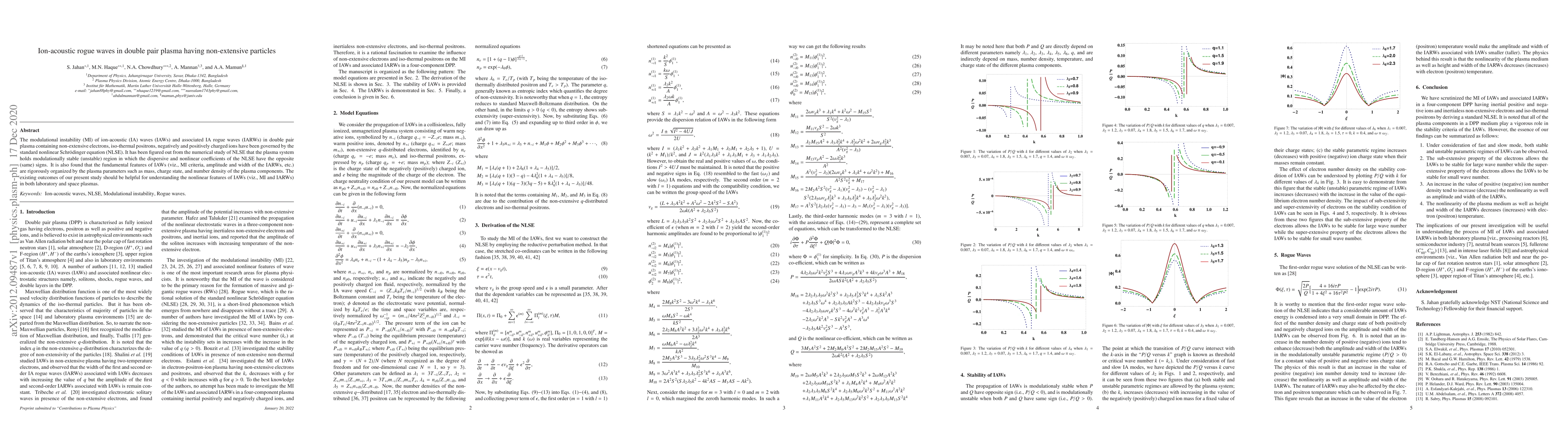 Researchers studied ion-acoustic rogue waves in a plasma with non-extensive particles and found that the system is modulationally stable or unstable based on certain parameters, affecting wave amplitude and width.